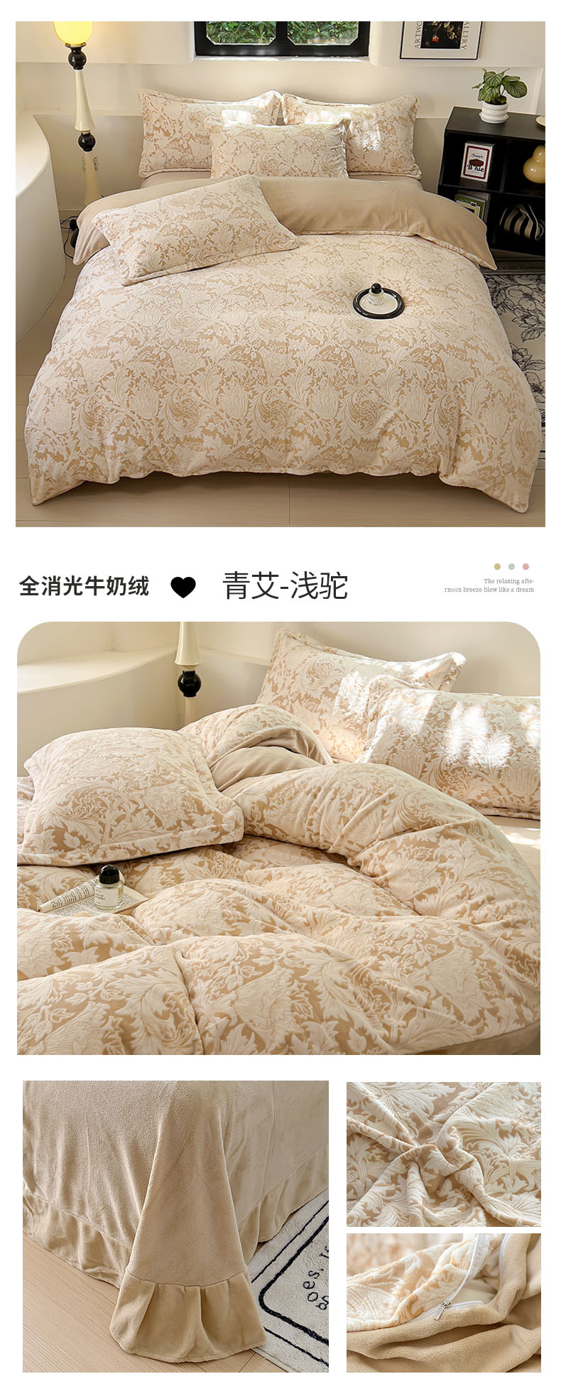 商品名称:新印象 2025新款高克重牛奶绒烂花四件套雕花绒四件套青艾-浅驼