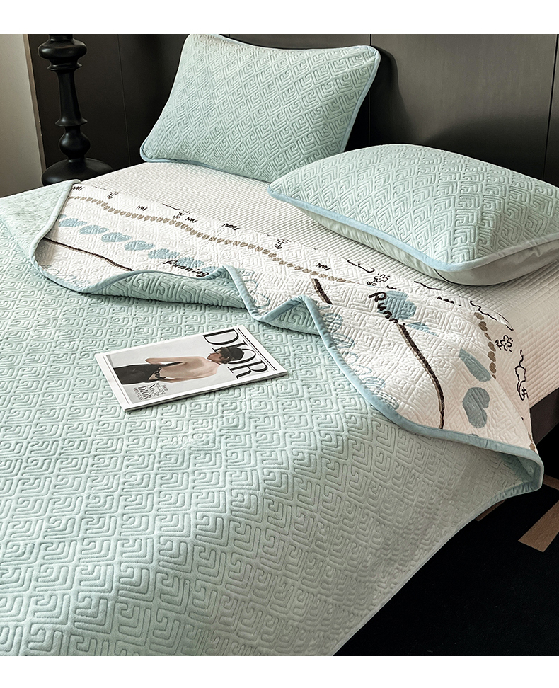 茉夕家纺 2024新款奶芙纯棉牛奶绒水洗床盖 奶芙-浅蓝
