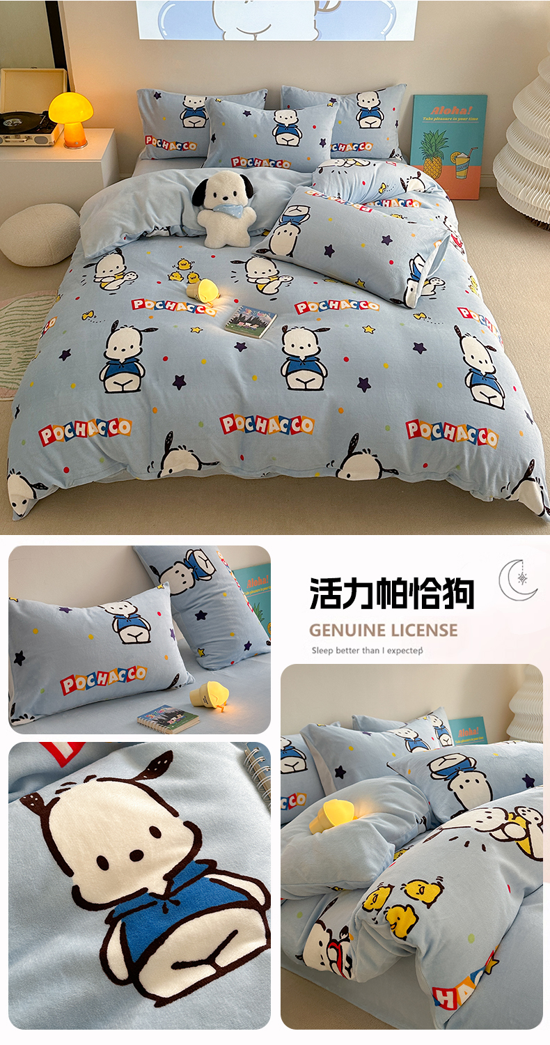 2024新款三丽鸥高克重牛奶绒四件套 活力帕恰狗