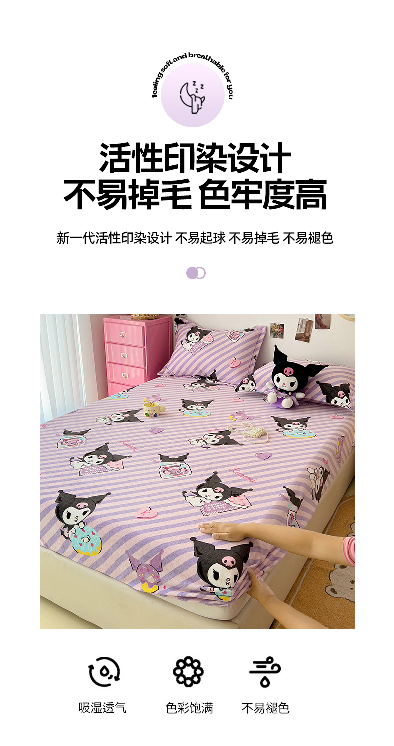 • 91家纺网 家纺一手货源 找家纺 KT猫直营店 2024新款三丽鸥正版授权库洛米牛奶绒单品床笠 贪吃库洛米-笠