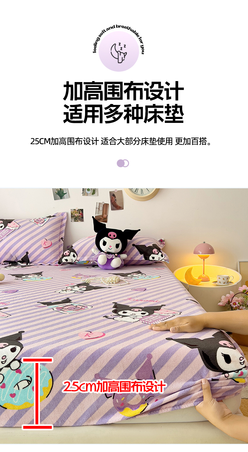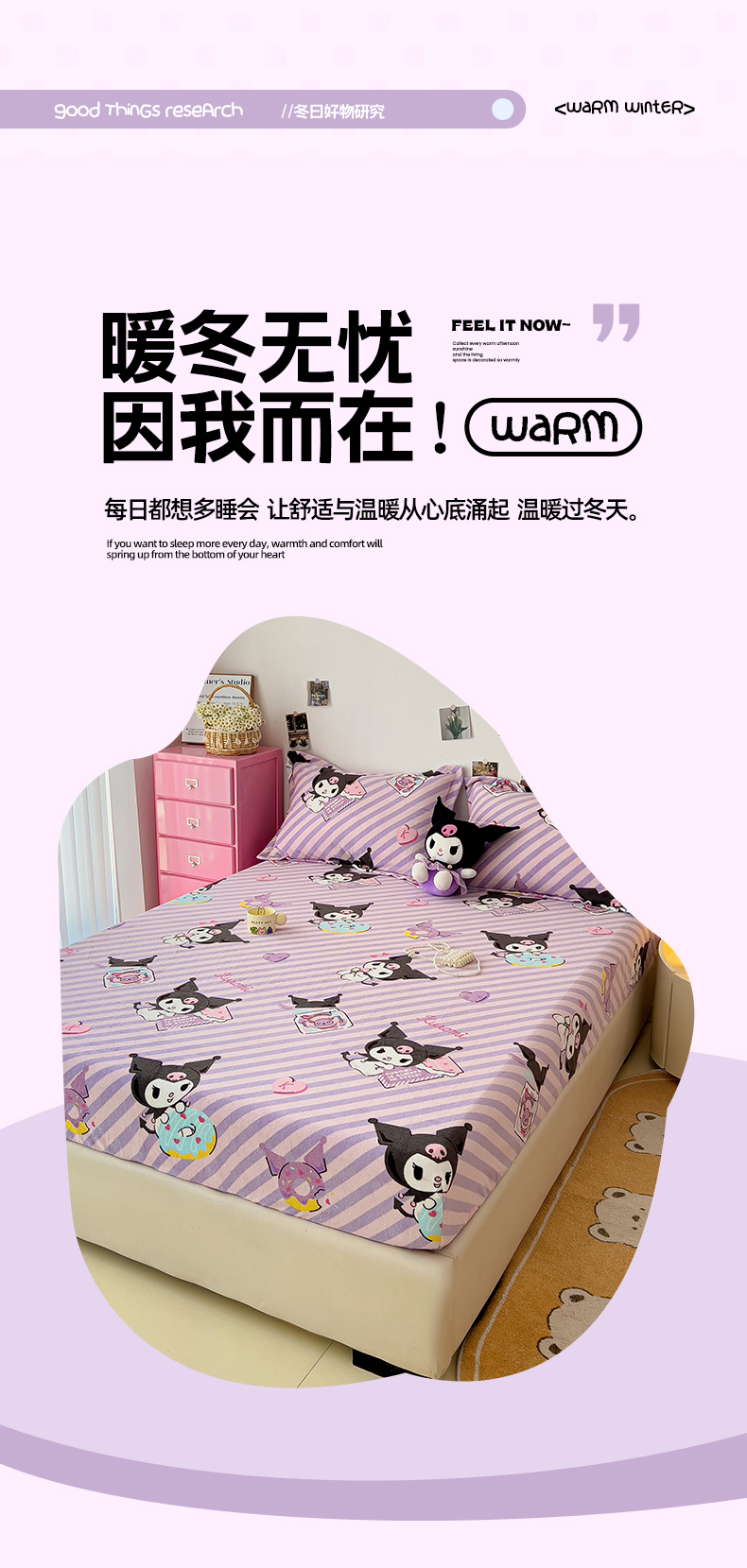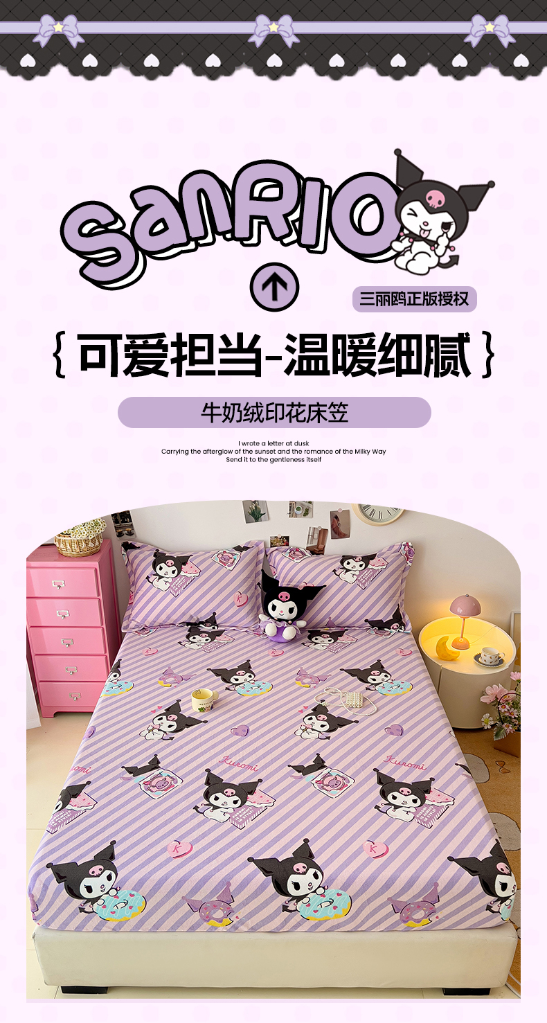 KT猫直营店 2024新款三丽鸥正版授权库洛米牛奶绒单品床笠 贪吃库洛米-笠