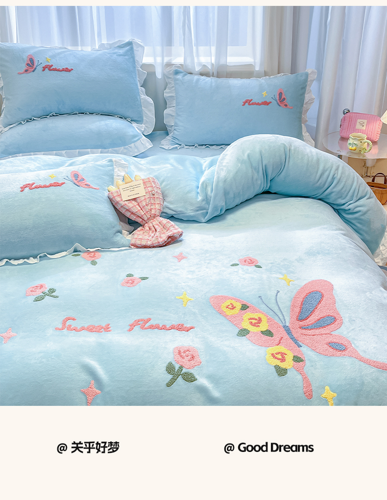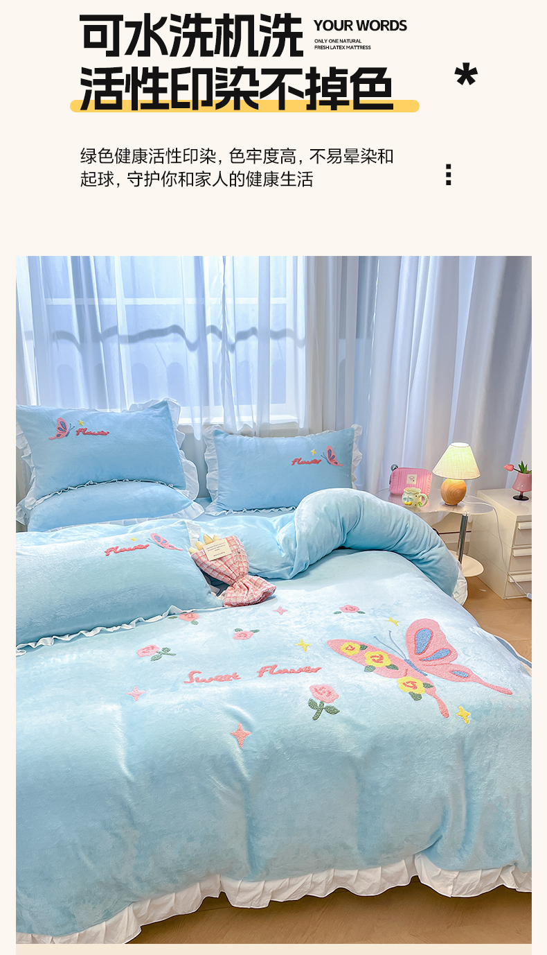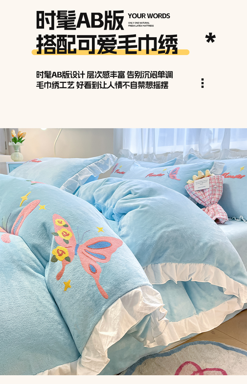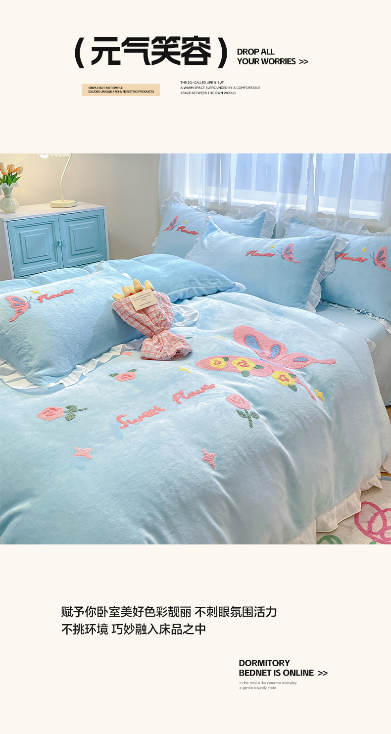 当前位置: 91家纺网 > 商品网购 > 床品套件 > 四件套 > 牛奶绒四件套 > 2024新款高克重加厚保暖牛奶绒毛巾绣四件套-阳光玫瑰蓝色