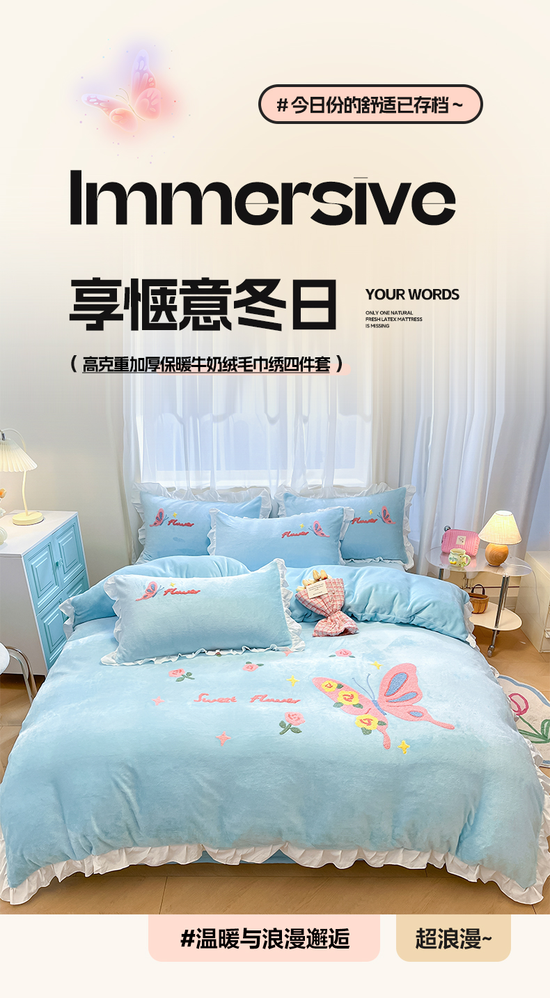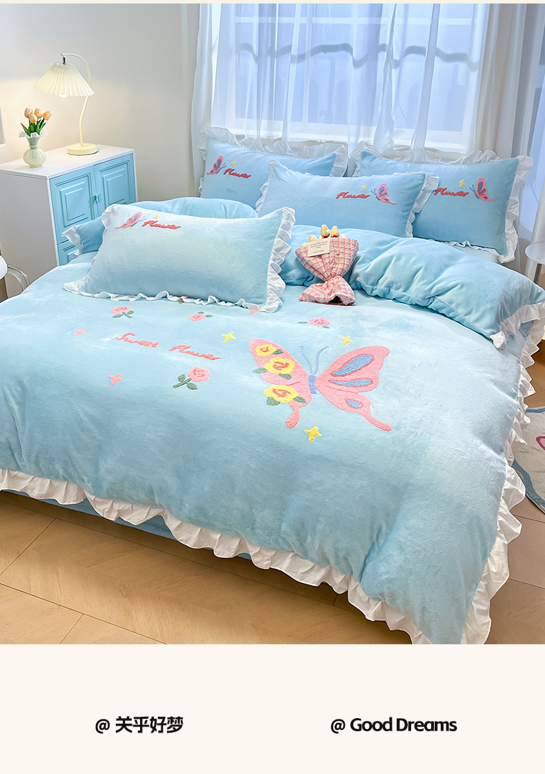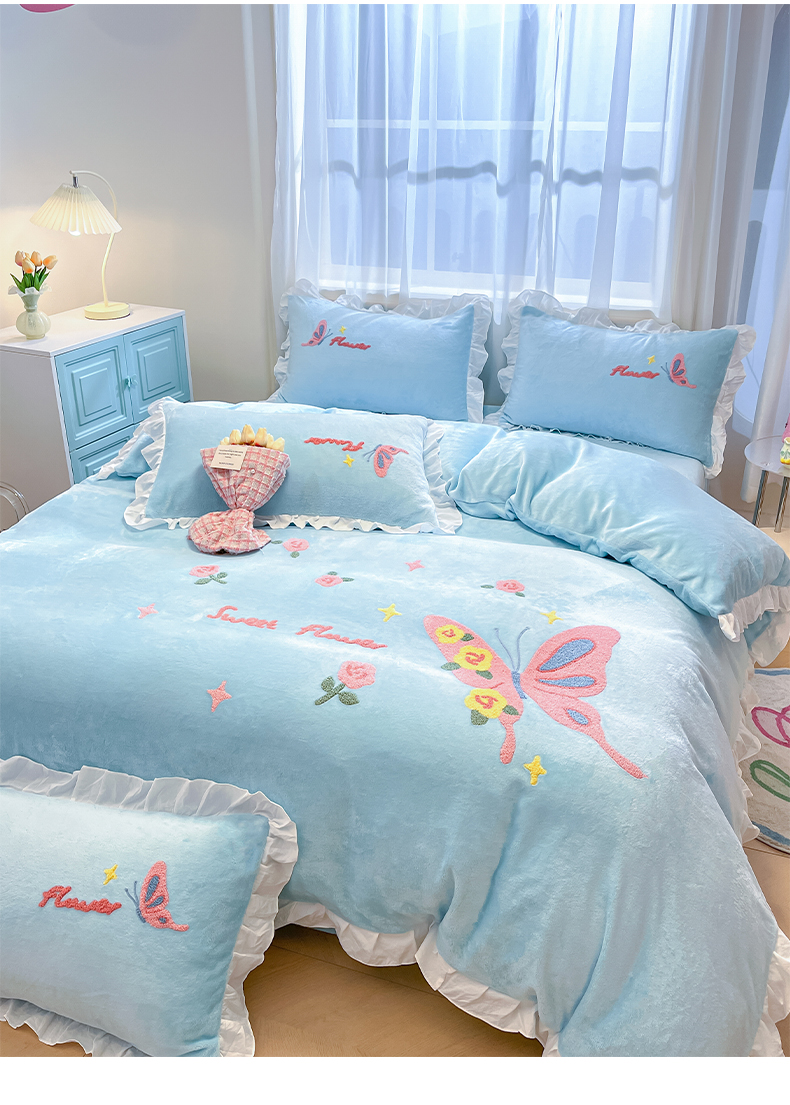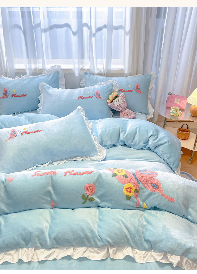 当前位置: 91家纺网 > 商品网购 > 床品套件 > 四件套 > 牛奶绒四件套 > 2024新款高克重加厚保暖牛奶绒毛巾绣四件套-阳光玫瑰蓝色