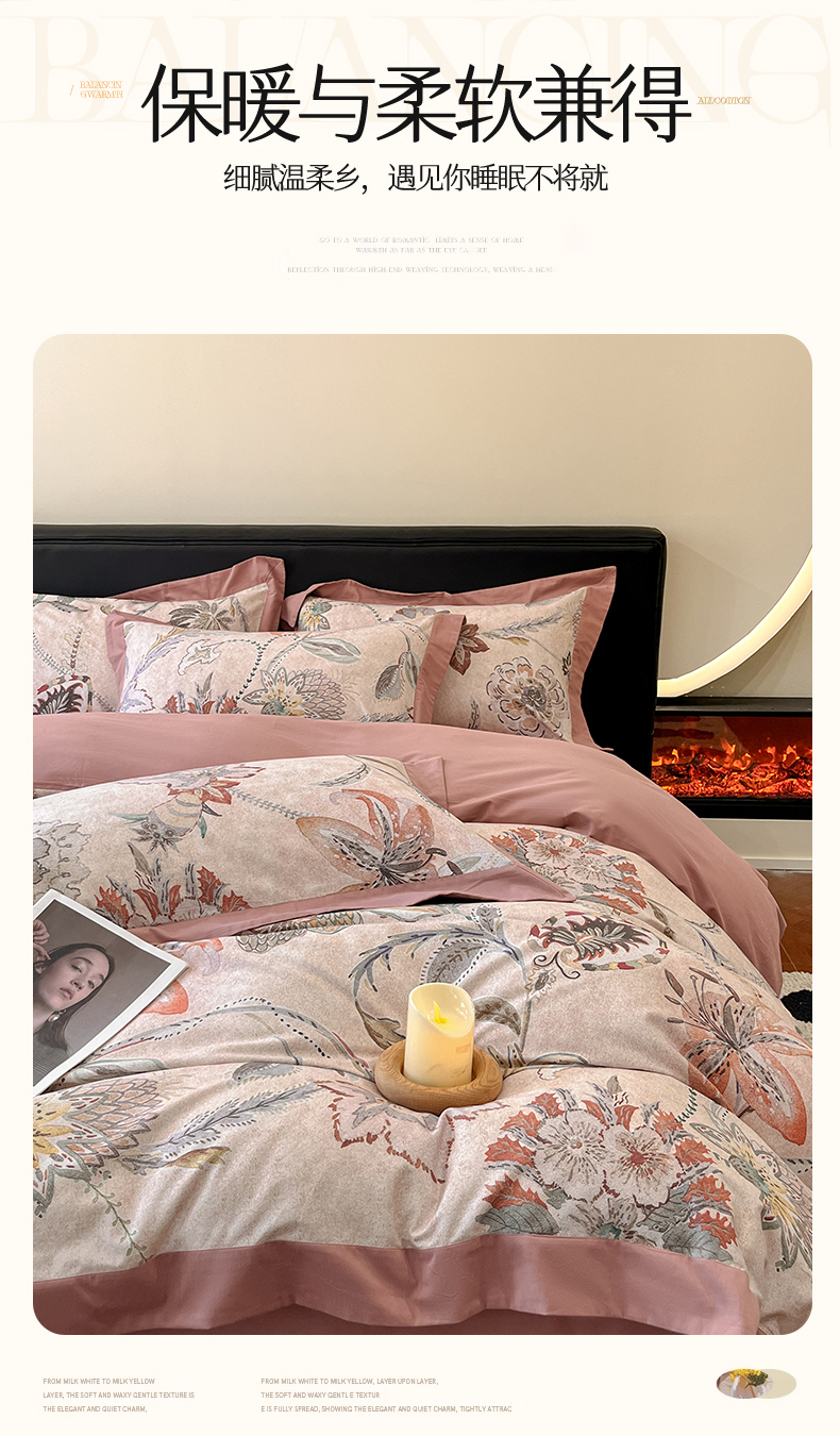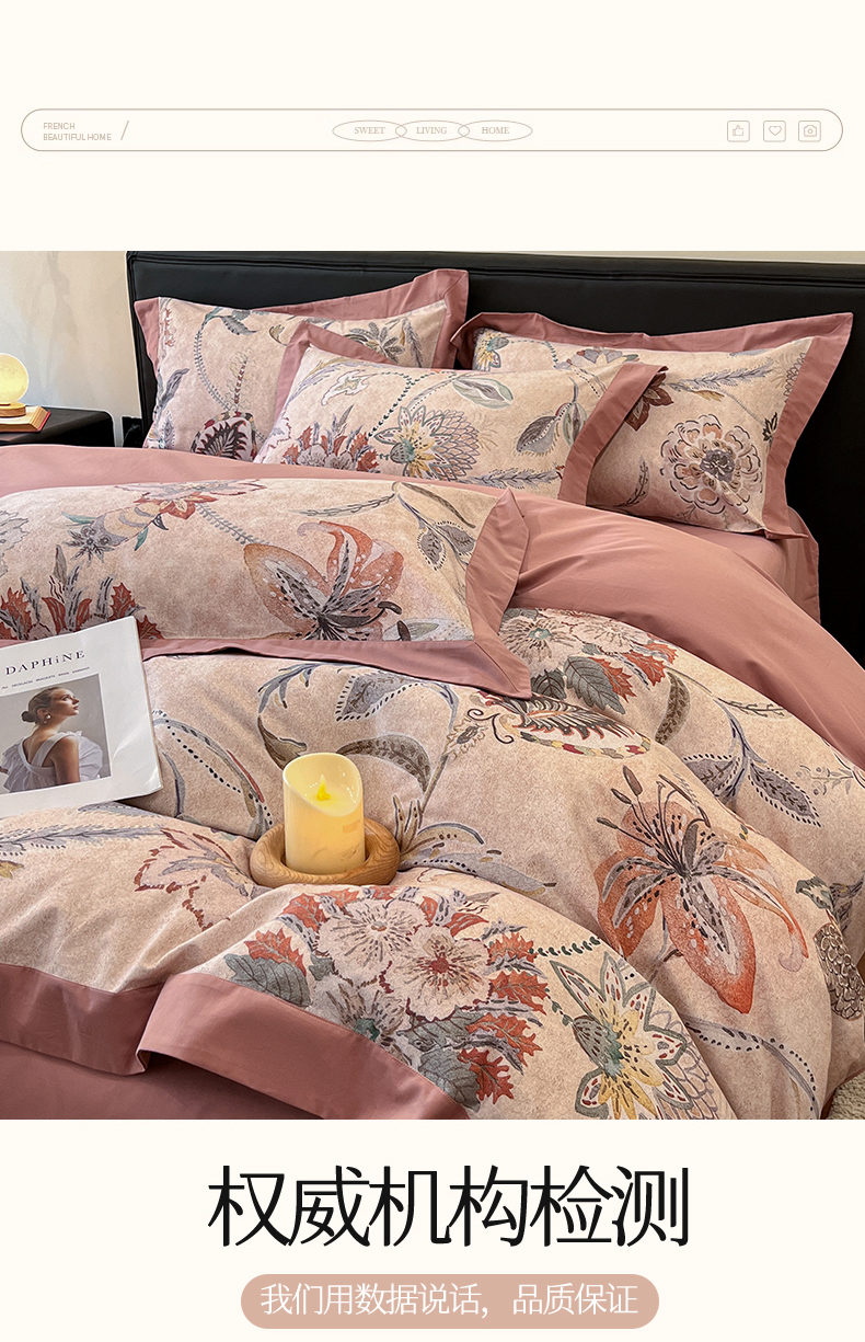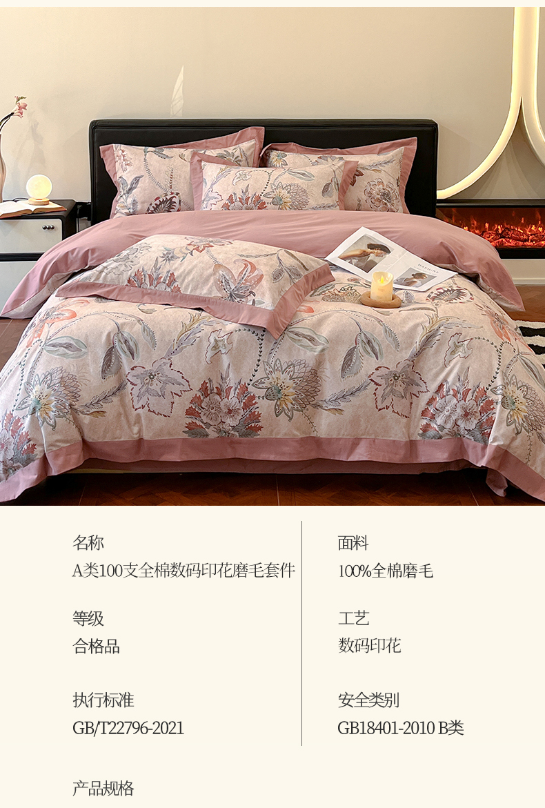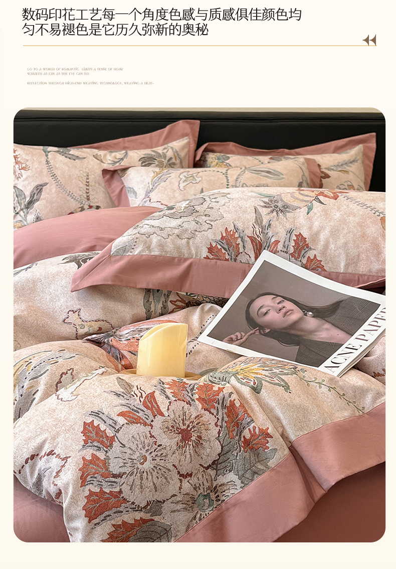 当前位置: 91家纺网 > 商品网购 > 床品套件 > 四件套 > 普通磨毛四件套 > 2024新保暖-秋冬A类100支全棉数码印花磨毛拼角四件套(礼盒包装) 100支磨毛-莉安娜-粉