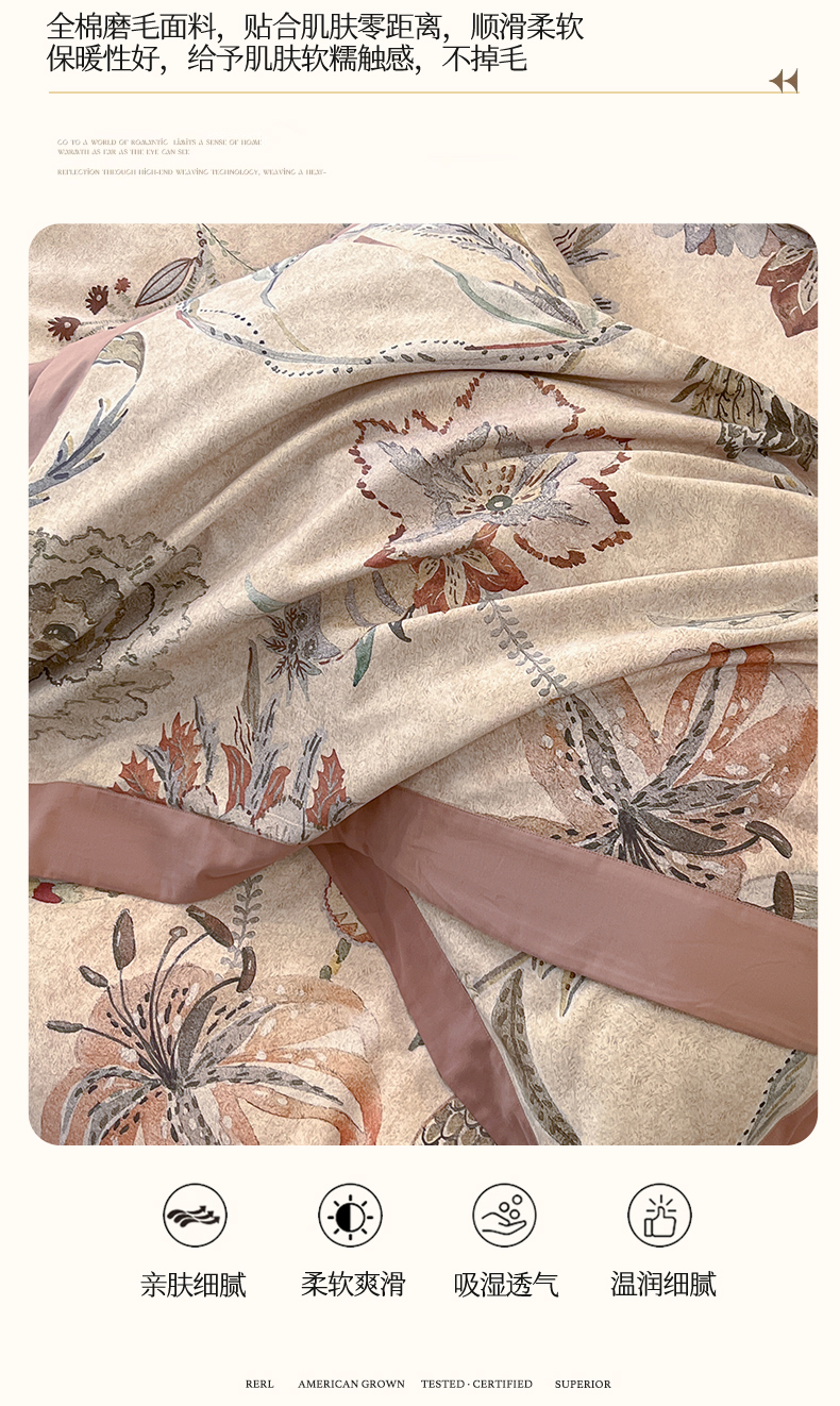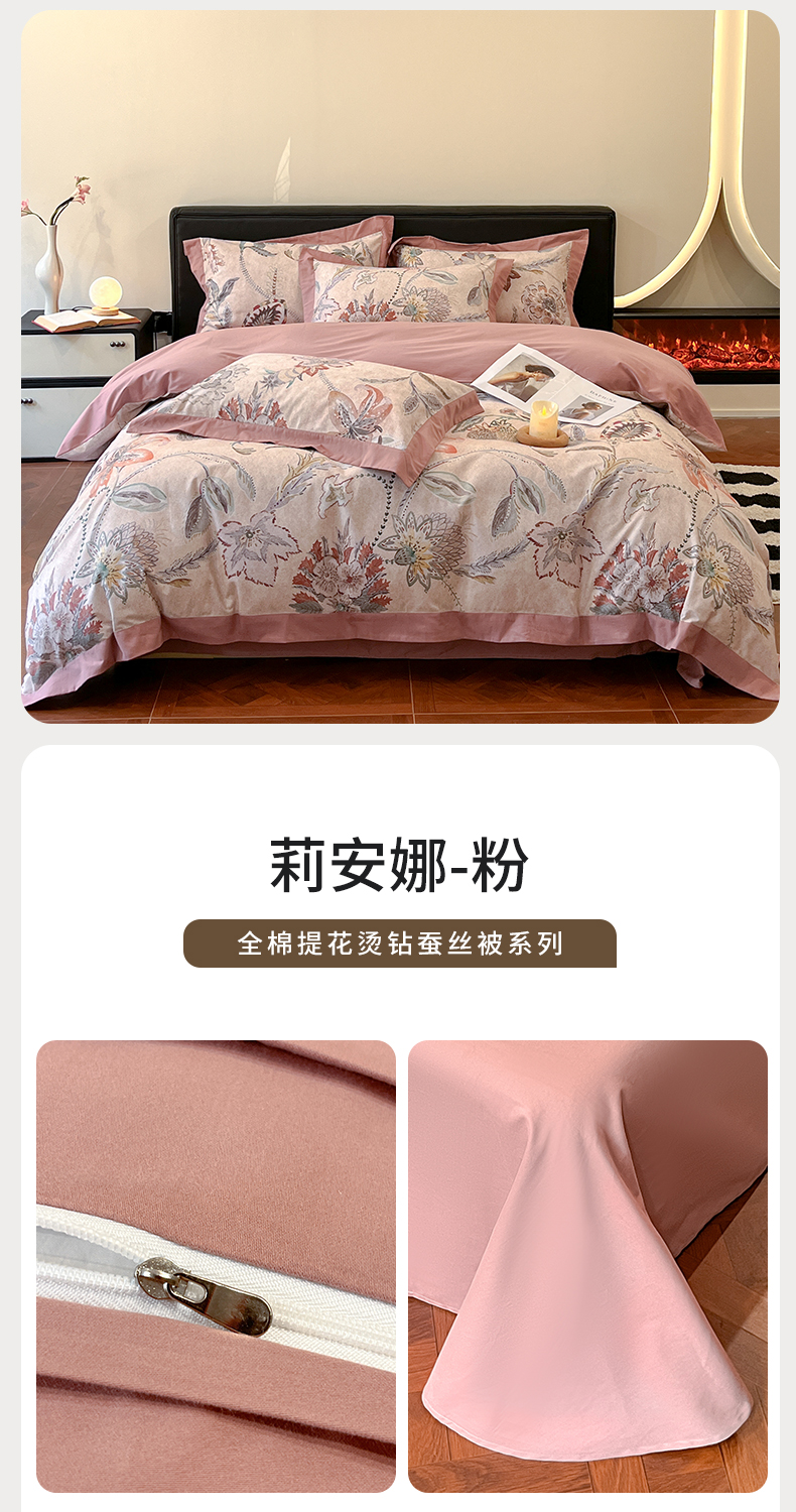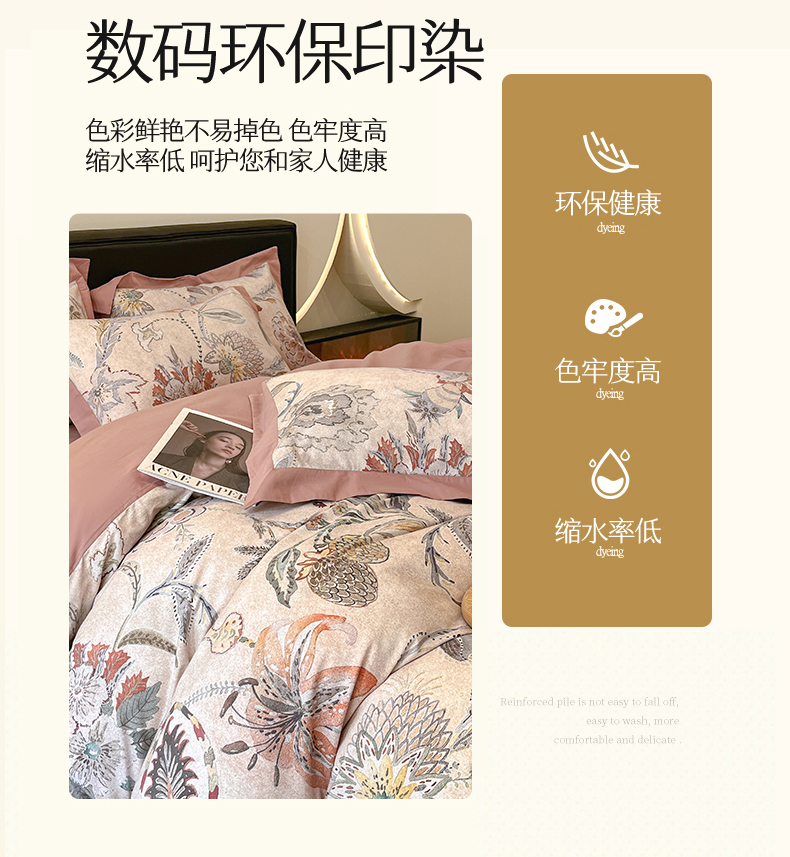 当前位置: 91家纺网 > 商品网购 > 床品套件 > 四件套 > 普通磨毛四件套 > 2024新保暖-秋冬A类100支全棉数码印花磨毛拼角四件套(礼盒包装) 100支磨毛-莉安娜-粉