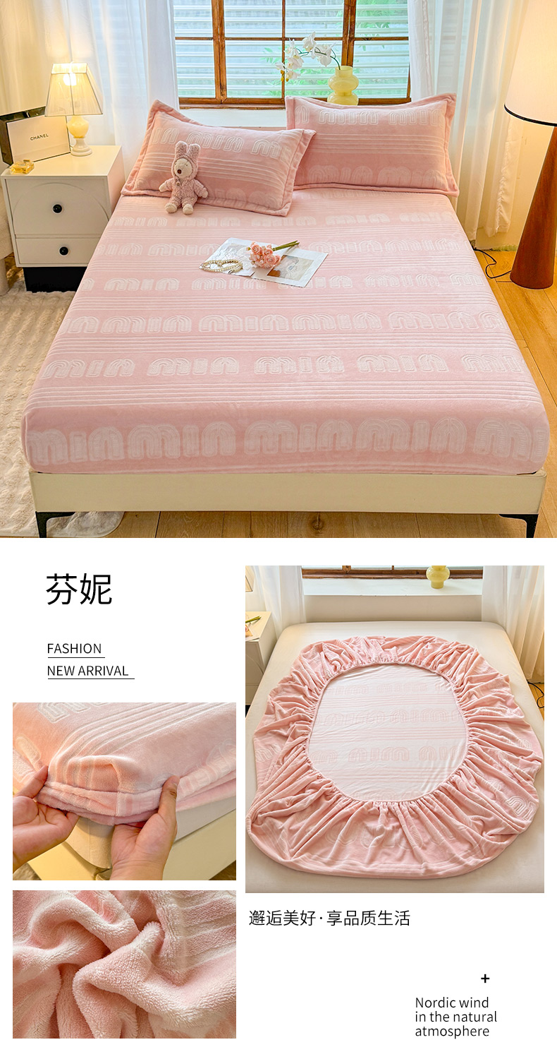2025新款A类高克重牛奶绒烂花绒系列-纯色雕花绒单床笠 芬妮