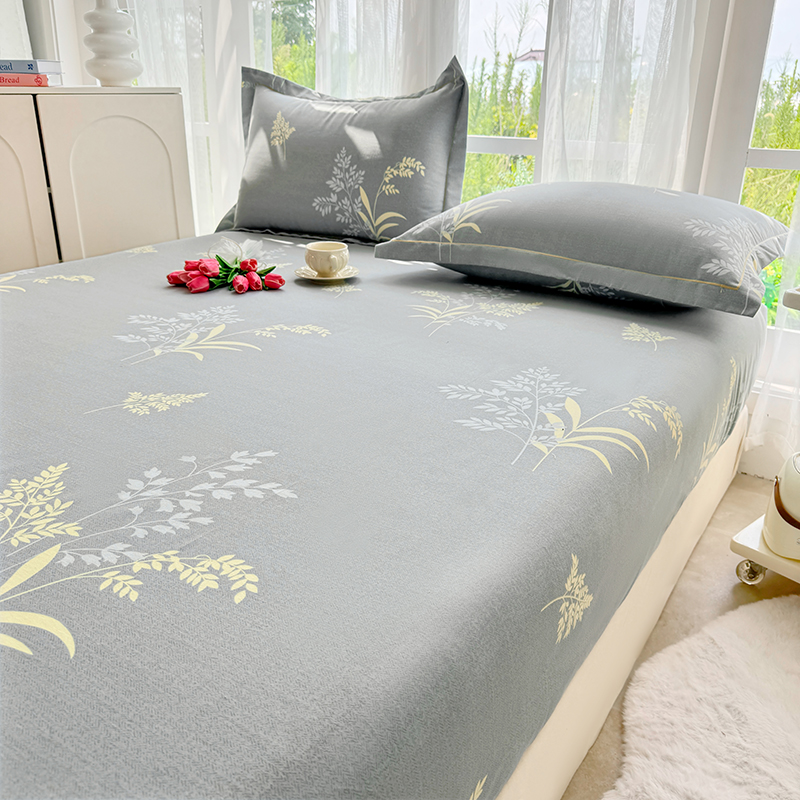 家贝爱 2024新款加厚生态全棉磨毛床笠 叶舞轻盈