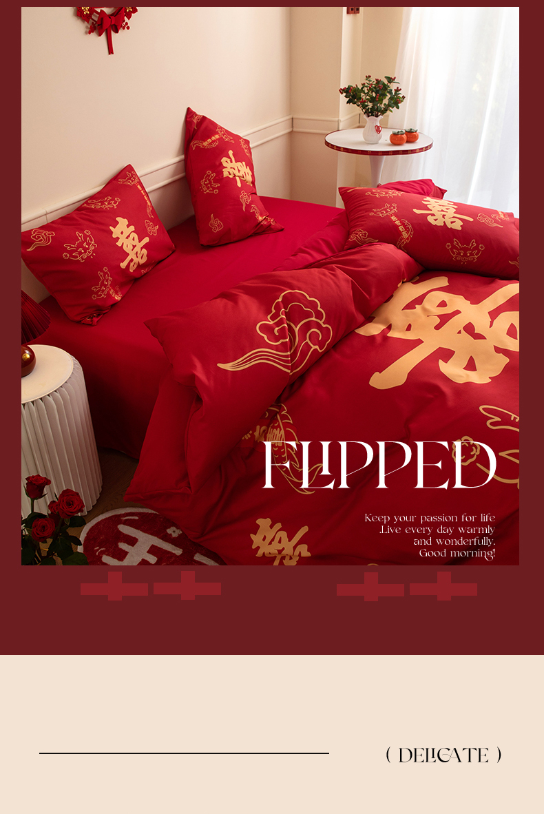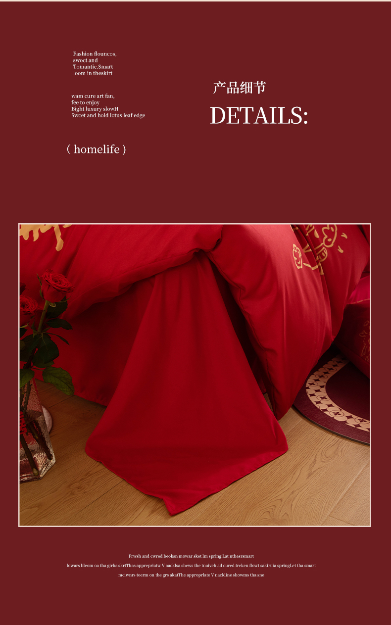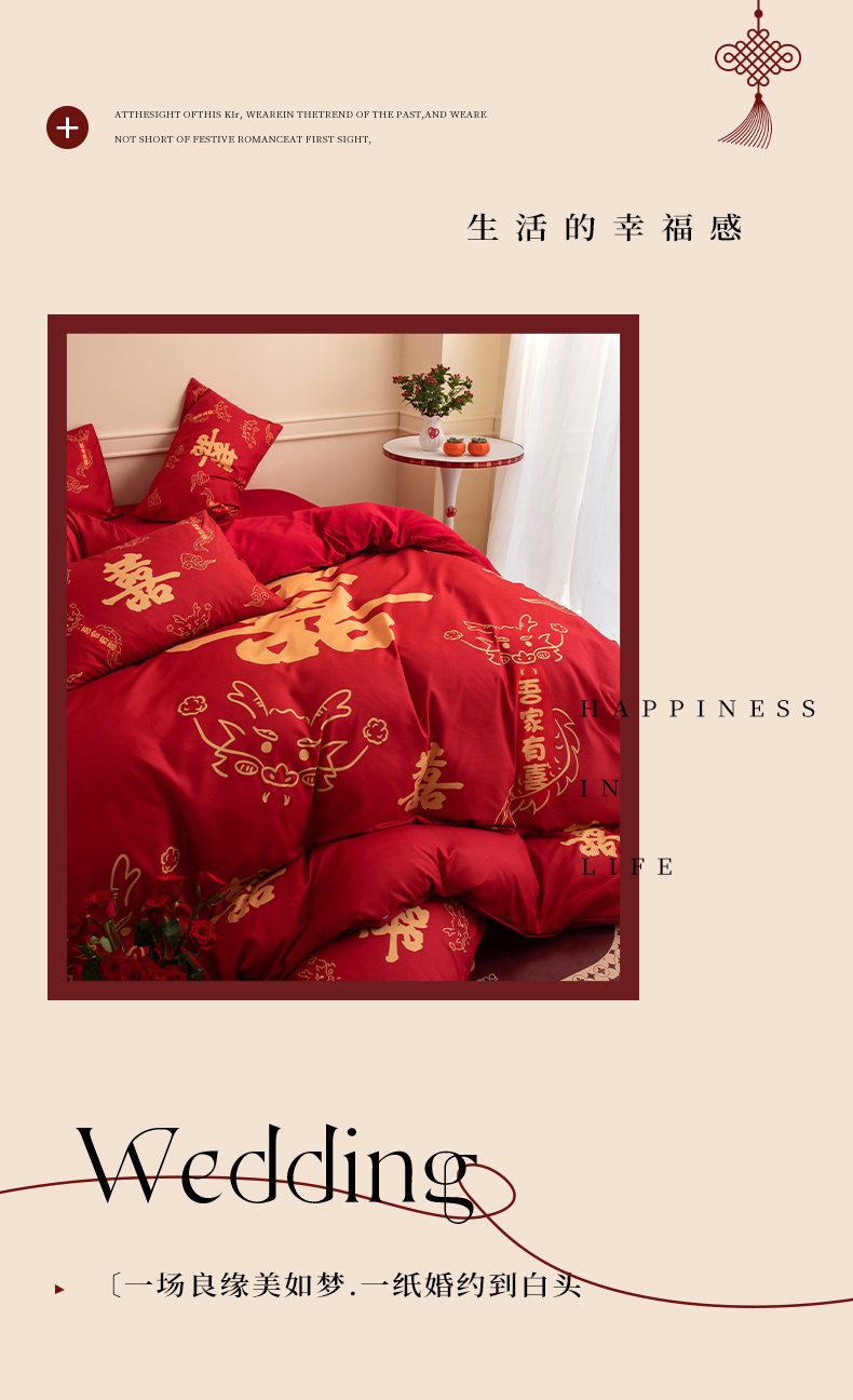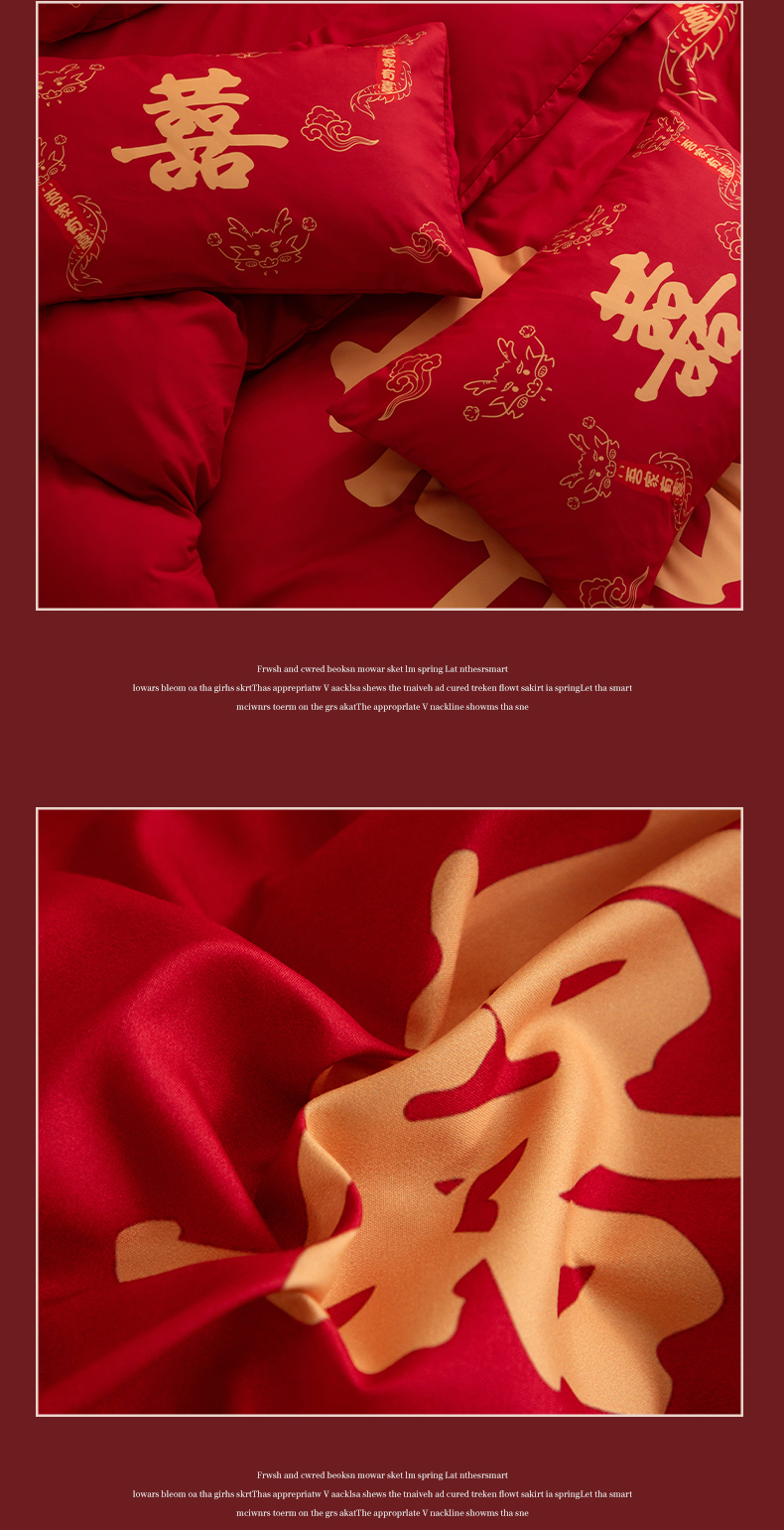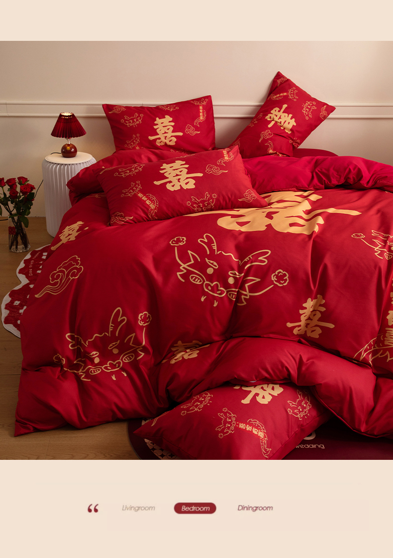 商品名称:色鬼布艺 2024新款水洗磨毛数码印花婚庆四件套磨毛四件套 喜结良缘