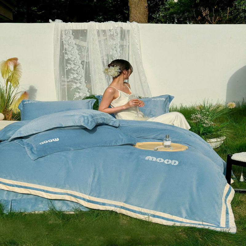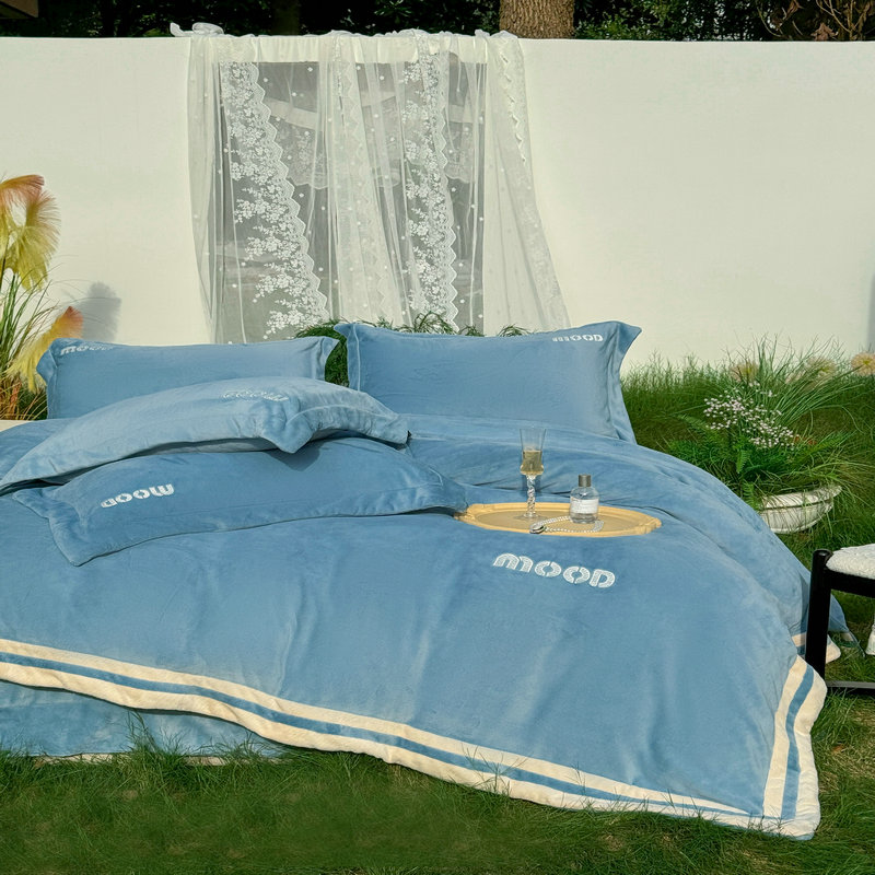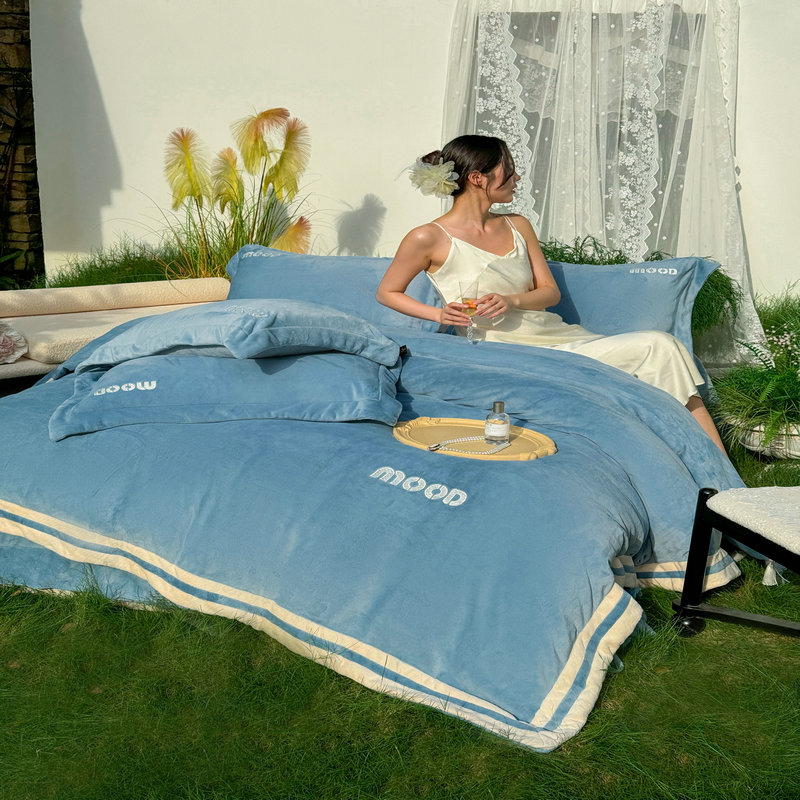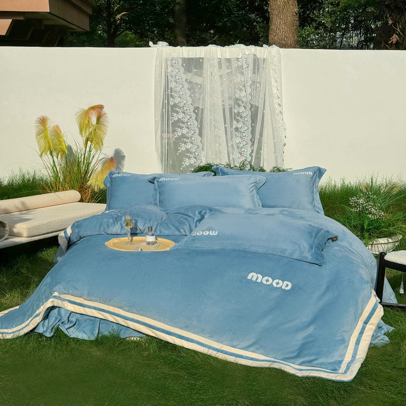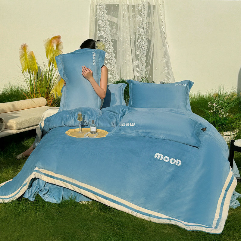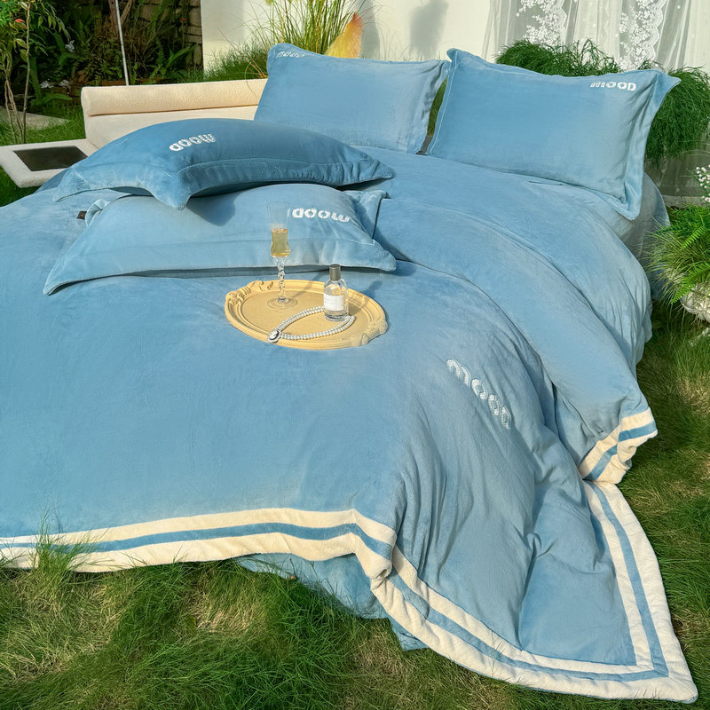 新月家纺(锦威郎) 2024新款高贵轻奢保暖牛奶绒四件套系列-摩登 蓝色