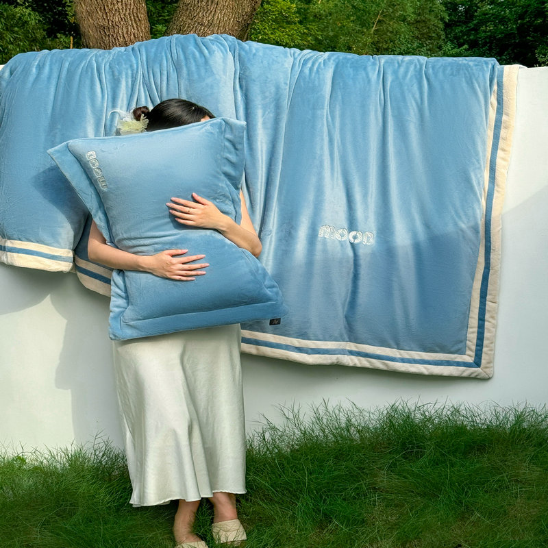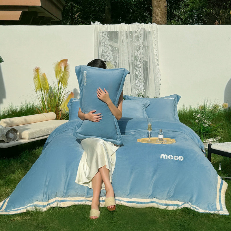 商品名称:新月家纺(锦威郎) 2024新款高贵轻奢保暖牛奶绒四件套系列-摩登 蓝色