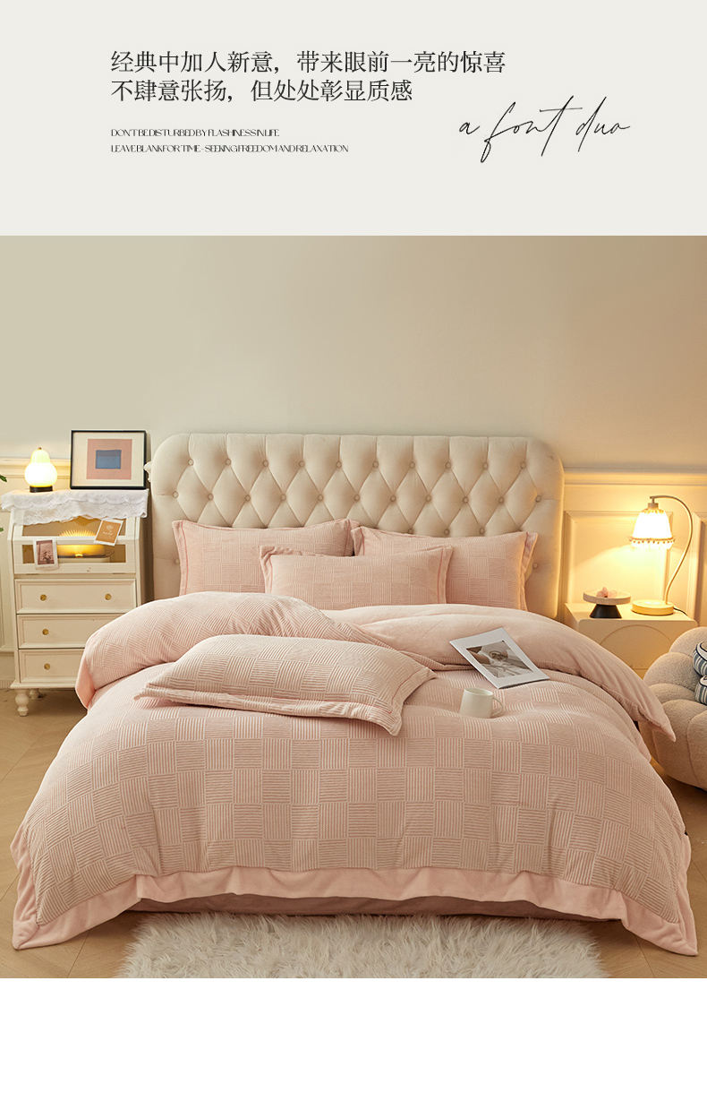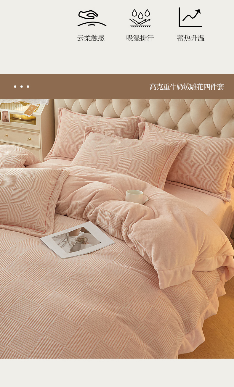 (总)简如 2025新款A类230克加厚立体雕花绒四件套,安吉拉-粉玉,安吉拉-海鸥灰,安吉拉-浅灰,安吉拉-浅绿,安吉拉-天空蓝,米兰-粉,米兰-米驼,米兰-玉,米兰-中灰
