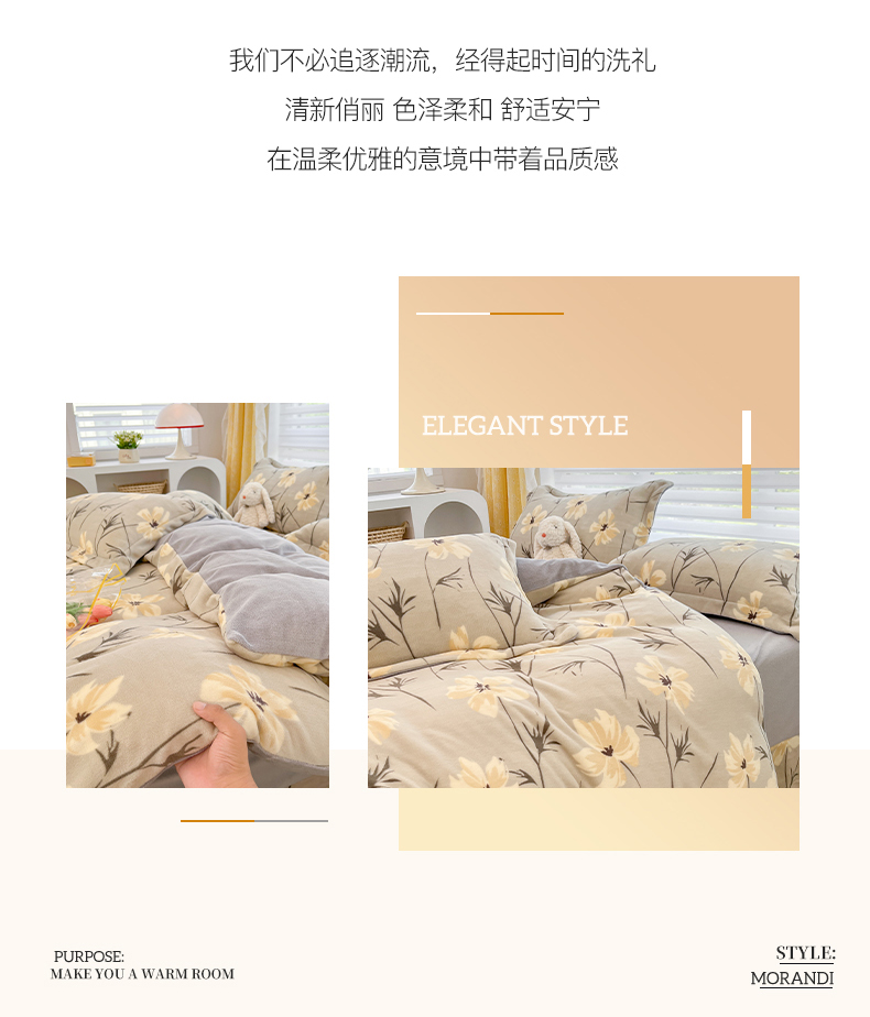商品名称:简如 2025新款加厚220克牛奶绒印花四件套 锦上添花-米