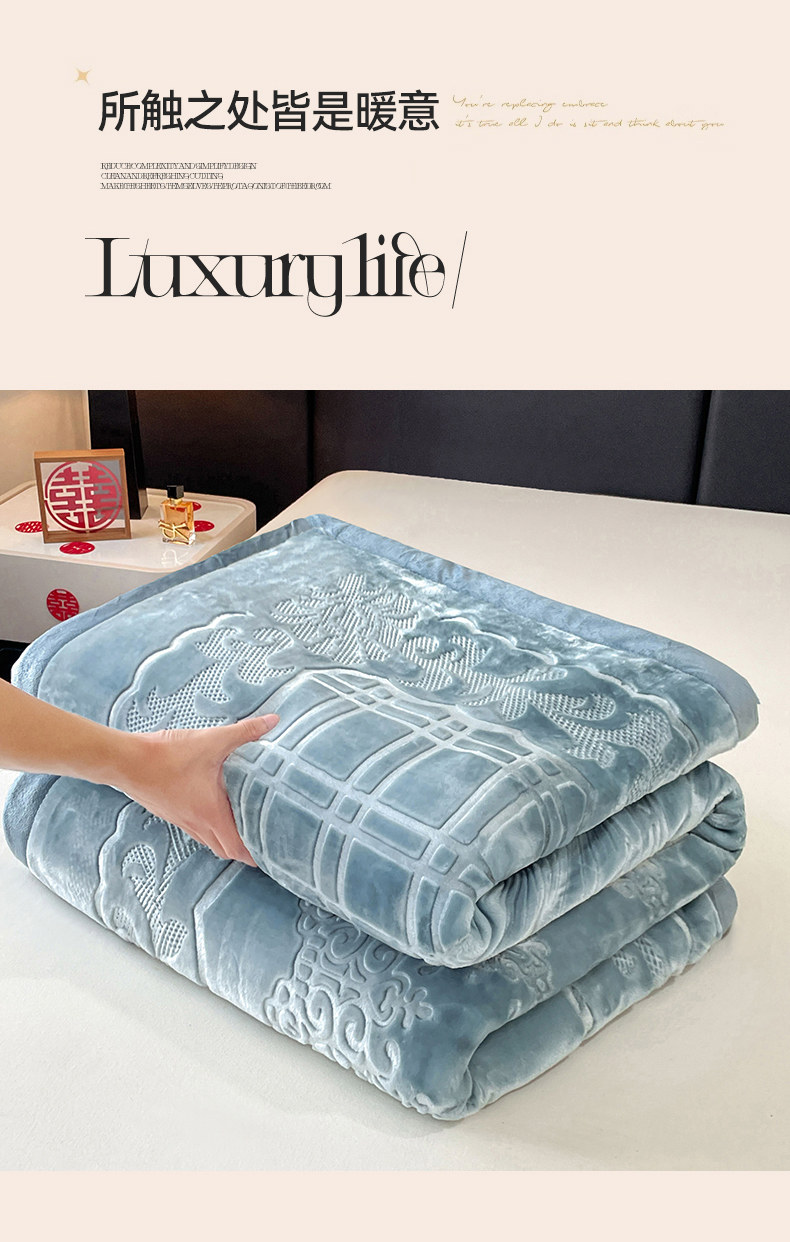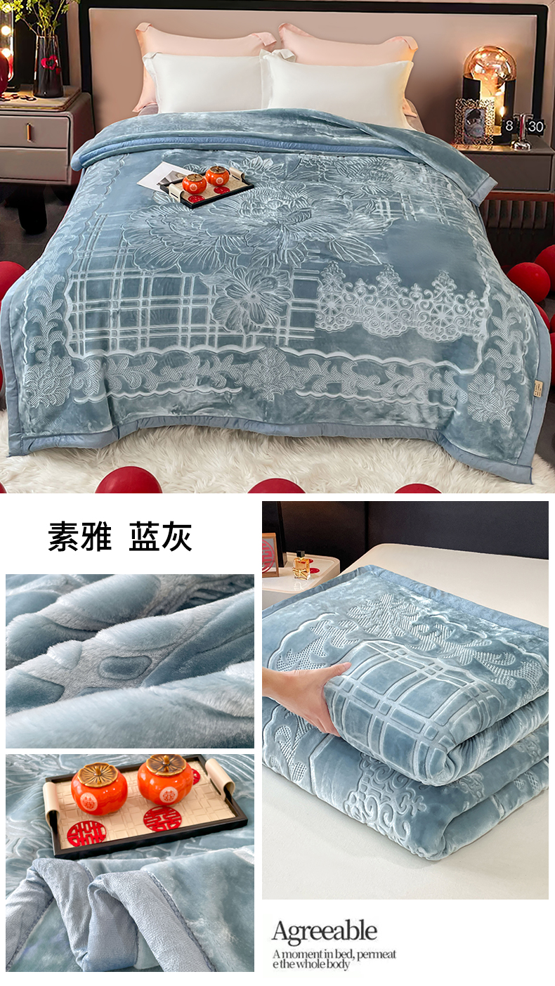 (总)凯轩毛毯网销专供 2026新款仿刺绣双层加厚压花云毯,豆沙红,绛紫色,孔雀绿,奶油咖,珊瑚粉,深灰色
