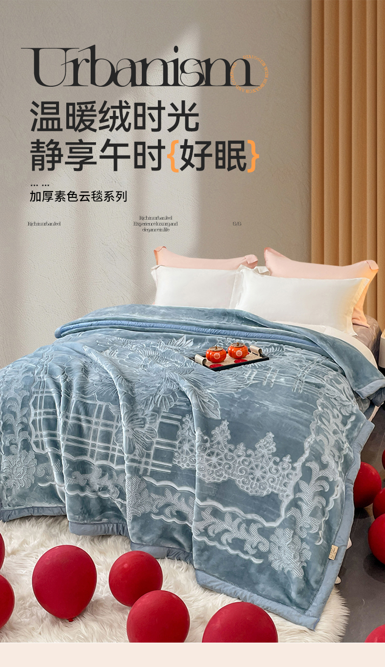 凯轩毛毛毯毯子网销专供 2024新款5D压花素色云毛毯毯子毛毛毯毯子毛毯毯子子 素雅-蓝灰