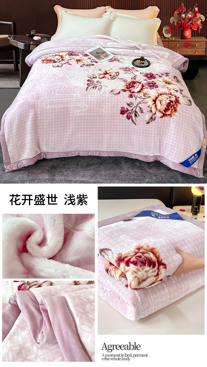 商品名称:凯轩毛毛毯毯子网销专供 2024新款花开盛世5D婚庆云毛毯毯子 花开盛世-浅紫