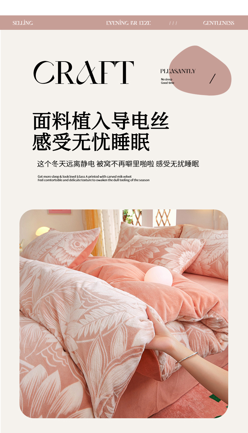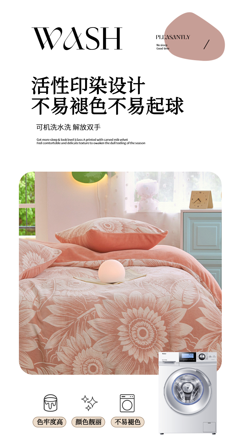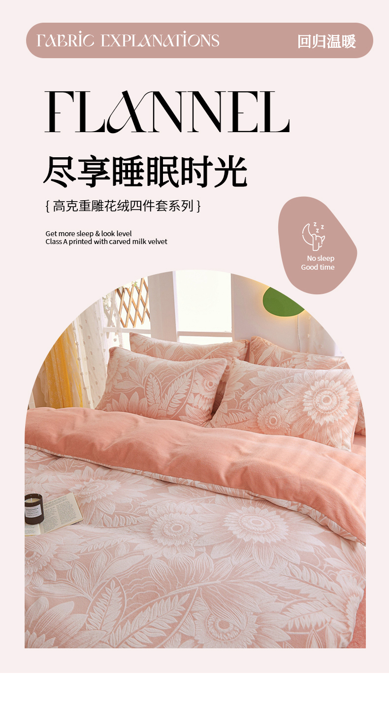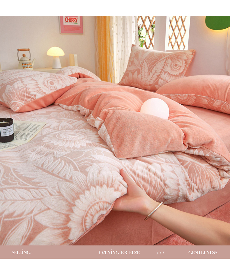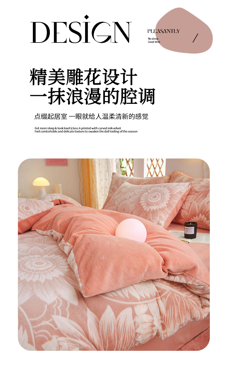 当前位置: 91家纺网 > 商品网购 > 床品套件 > 四件套 > 牛奶绒四件套 > 菡宝 2024新款雕花绒230g全消光牛奶绒四件套及单品 - 四件套 花开向阳粉