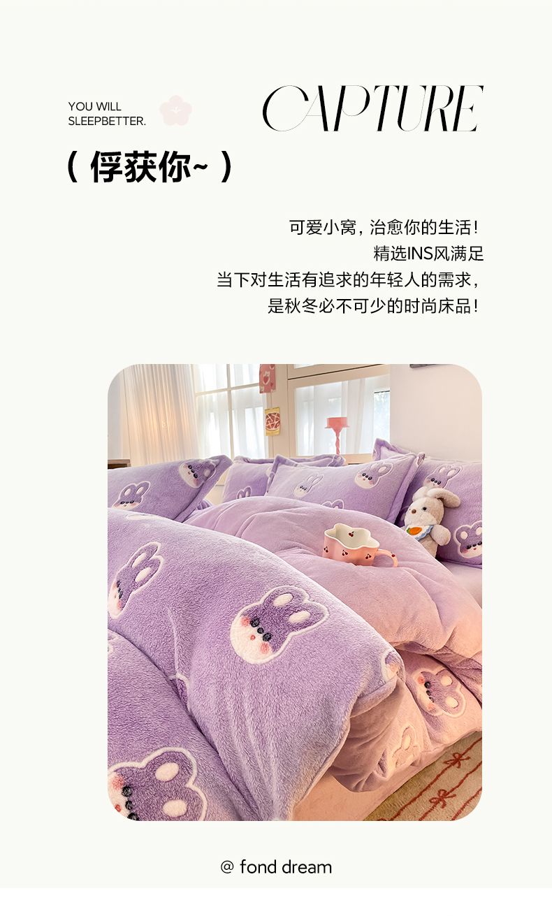 (总)川悦生活 2025新款立体雪花绒印花四件套学生床系列一场景一,ins樱桃,爱米兔,冰激凌小熊,波波熊,啵啵草莓,彩虹爱心粉,彩虹爱心蓝,彩虹爱语粉,彩虹爱语蓝,哒哒鸭丫,嘎嘎小熊,橘兔,可爱熊,可可小狗,快乐鸭鸭,蜜语奶兔,奶芙小花,奶咖小熊,奶味云朵,妮娜兔,巧克力熊,桃心爱语,甜蜜日常粉,甜系粉熊,甜系龙龙,小熊花园,幸福甜兔,熊小巴,郁金奶兔