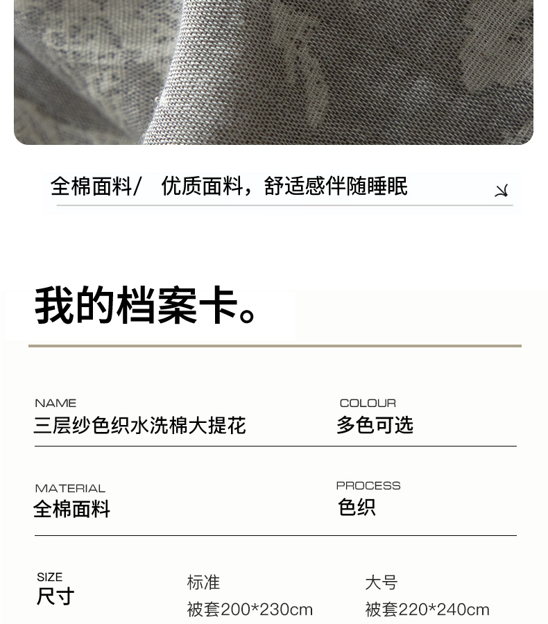 商品名称:(总)卡姿家纺 2024秋冬三层纱色织水洗棉大提花