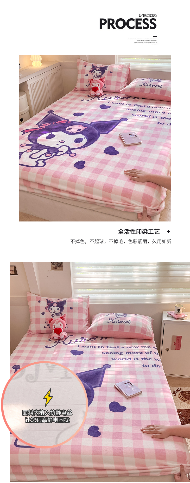 • 91家纺网 家纺一手货源 找家纺 金爱家 2024新款大阪单品牛奶绒床笠 绒-D纷纷库洛米