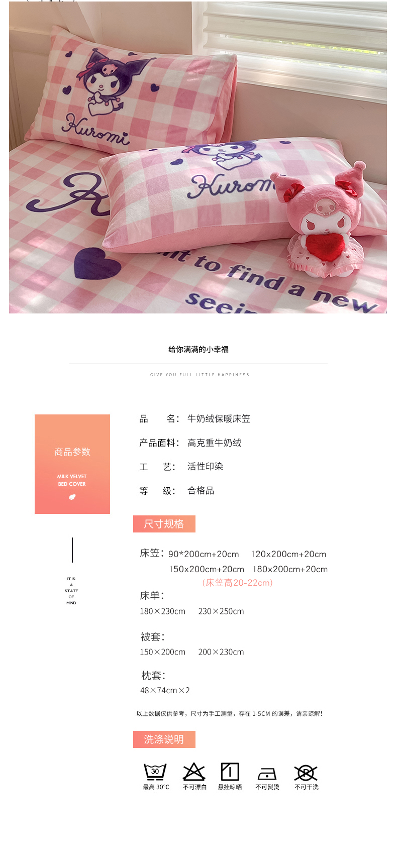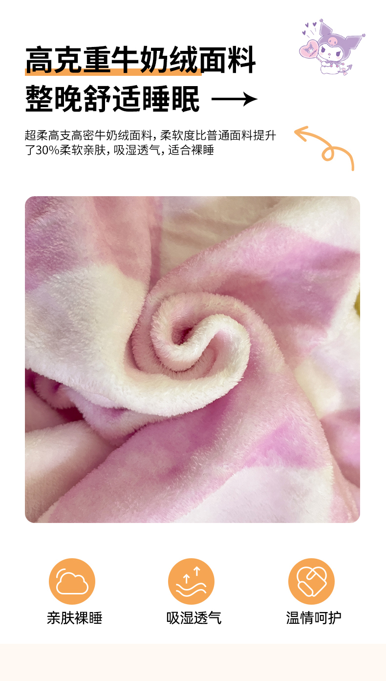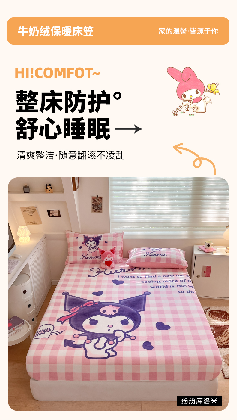 金爱家 2024新款大阪单品牛奶绒床笠 绒-D纷纷库洛米