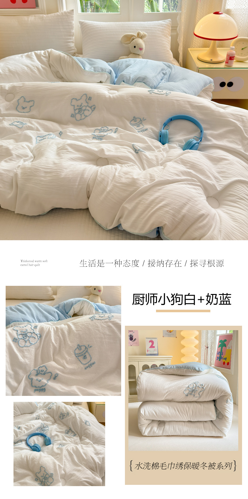 商品名称:花伞 2024新款INS小红书毛巾绣水洗棉冬被 厨师小狗白+奶蓝