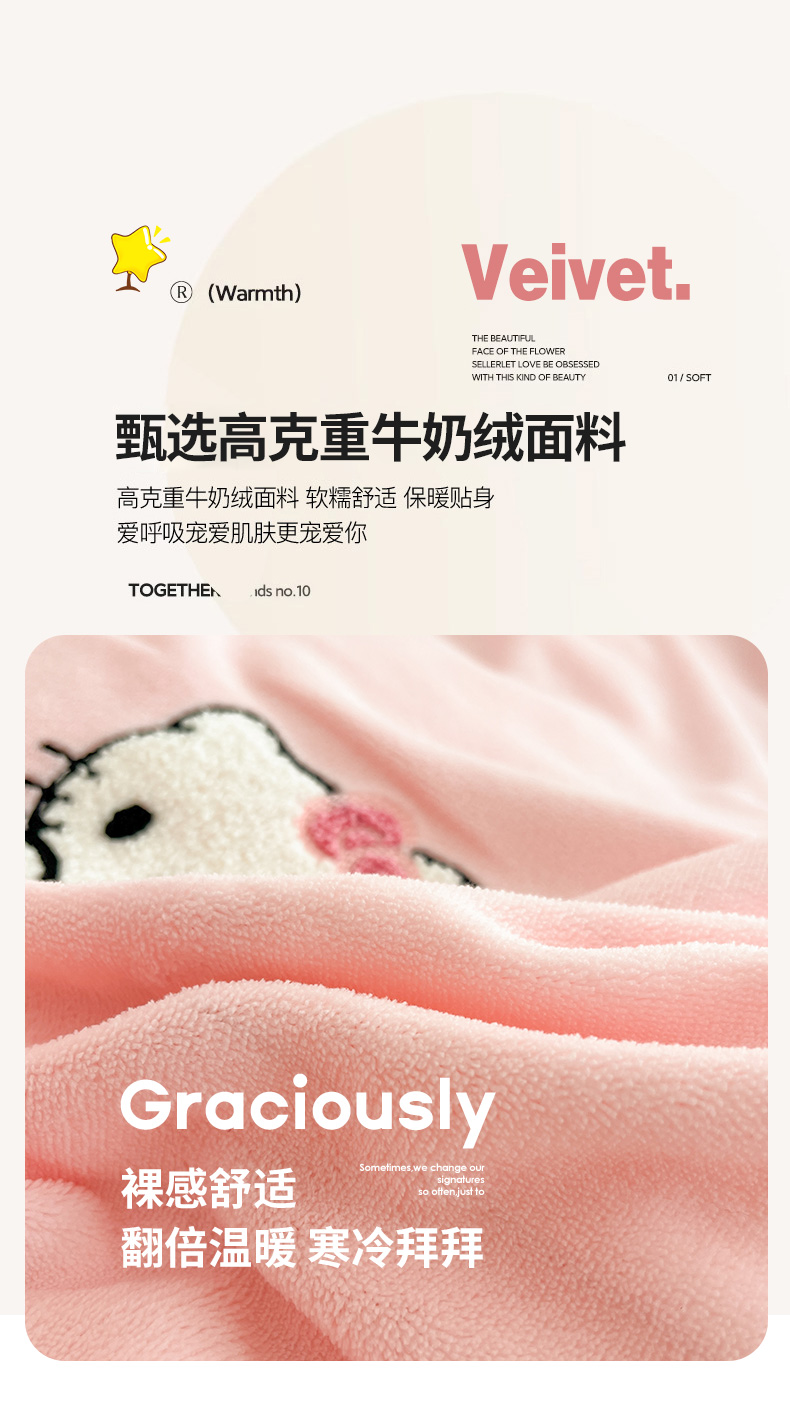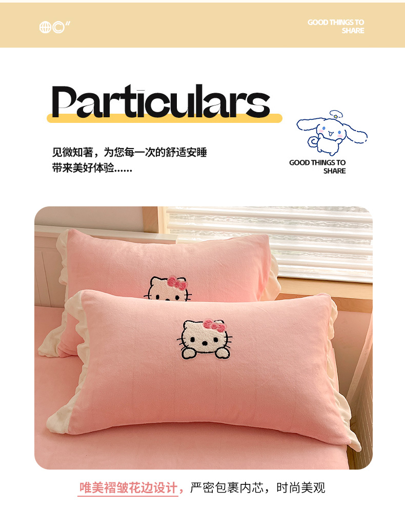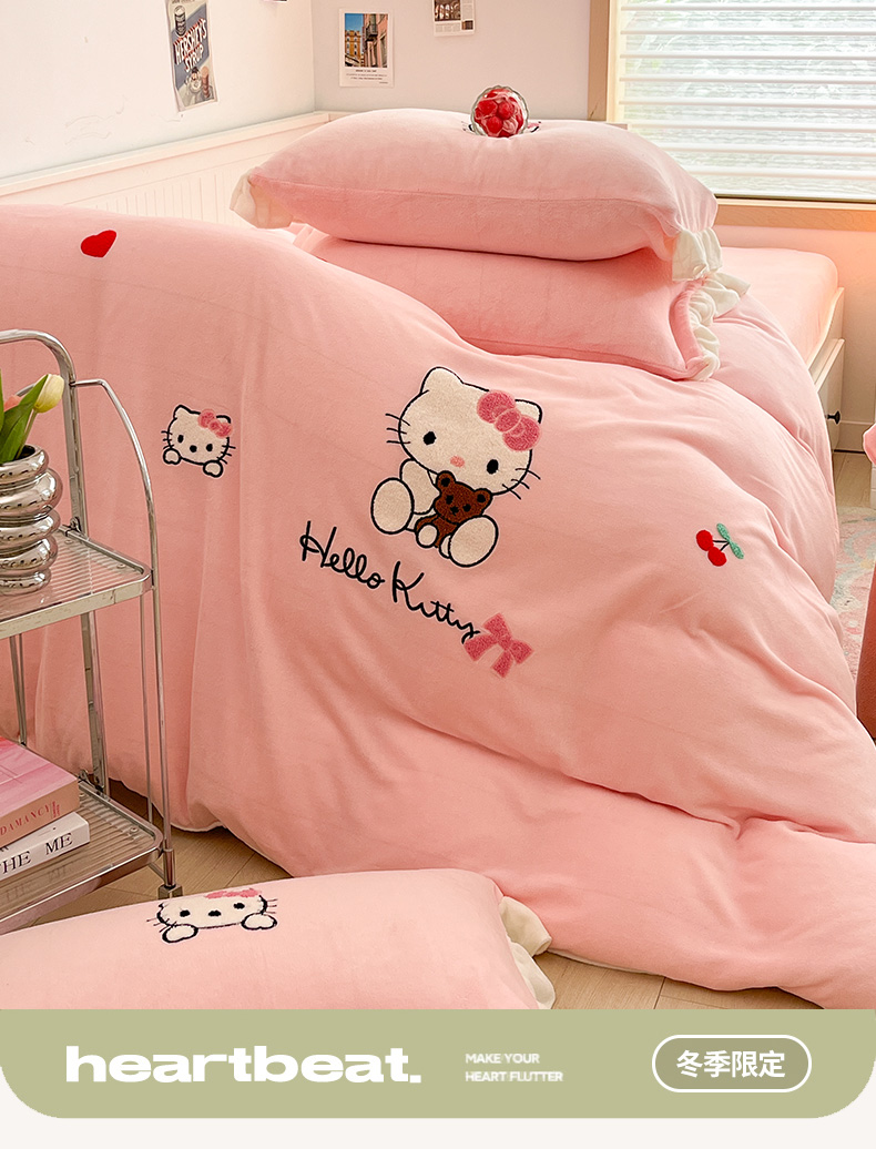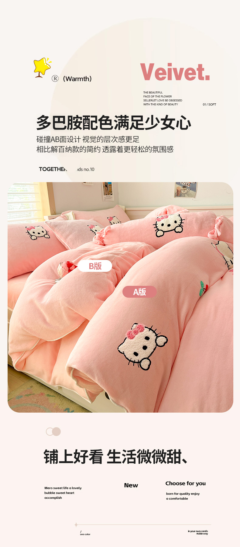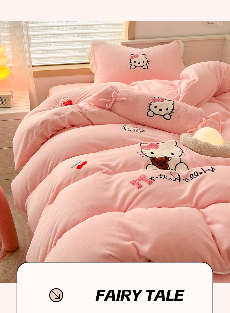 商品名称:丝印良品 2024秋冬卡通毛巾绣牛奶绒四件套 KT猫粉