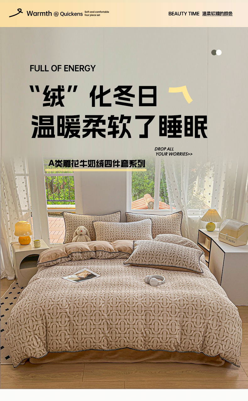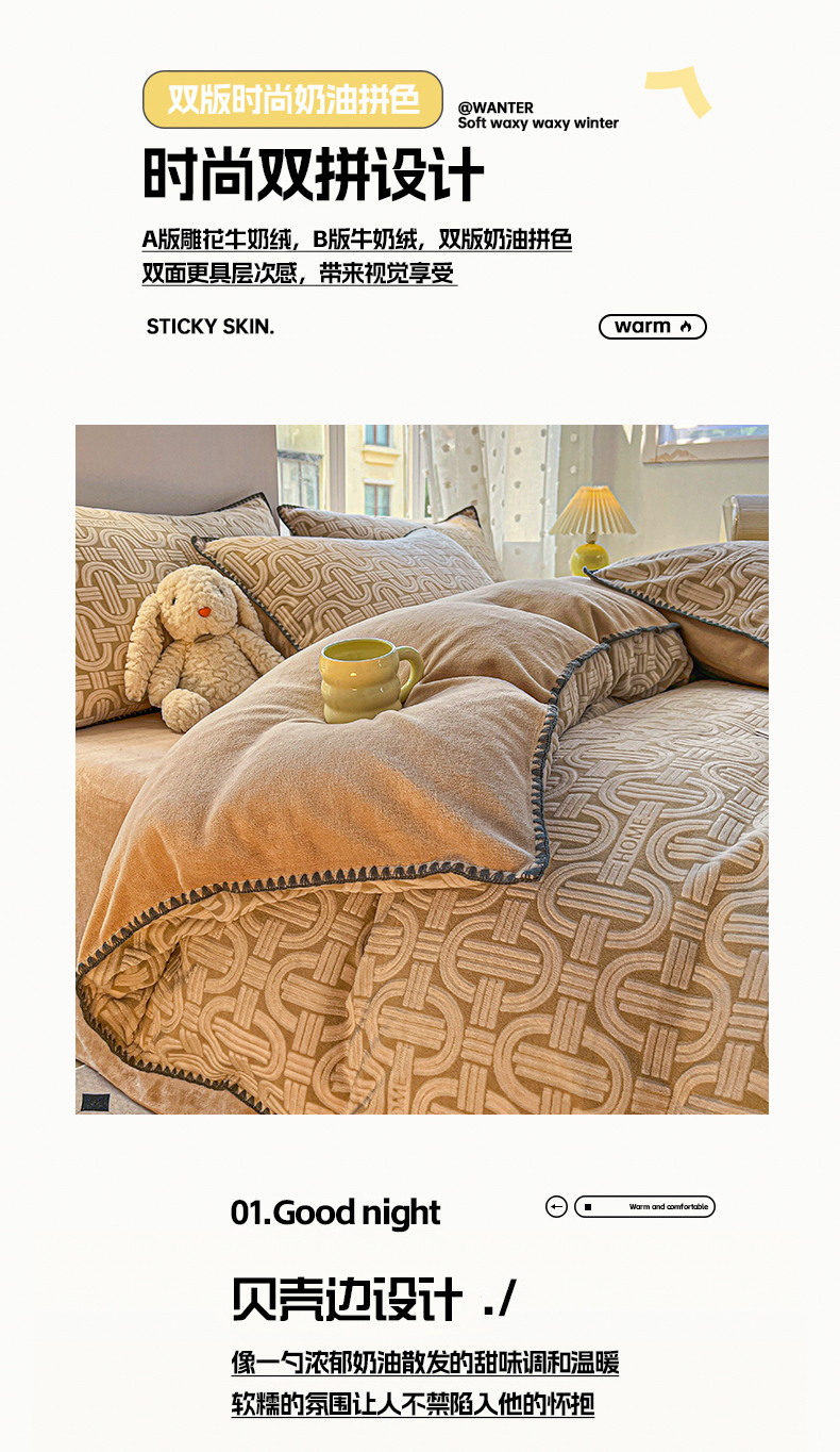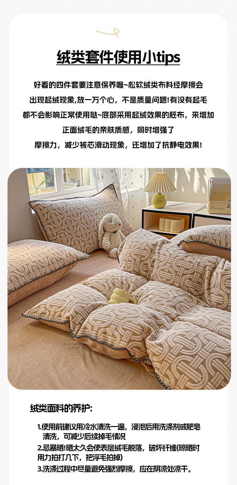 当前位置: 91家纺网 > 商品网购 > 床品套件 > 四件套 > 牛奶绒四件套 > 晚依家纺 2024新款230g全消光牛奶绒四件套 巴克曼-米驼