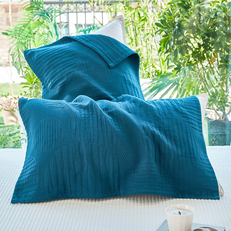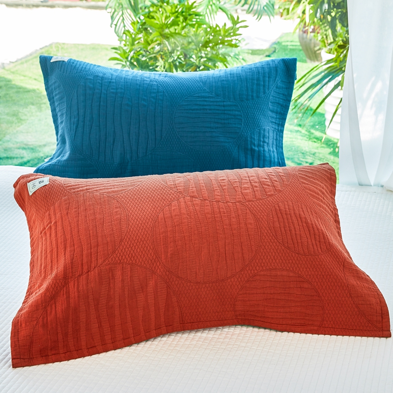 (总)美宜家 2026新款全棉枕头套高密色织水洗加棉绗缝高端纯色枕套,极简山灰,极简米其,极简兰灰,极简仔兰