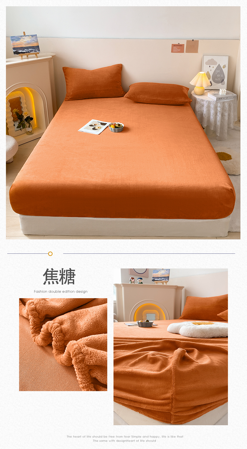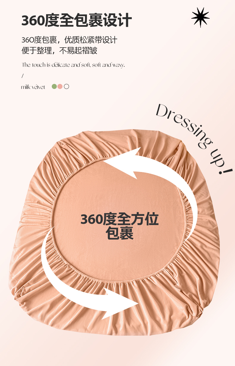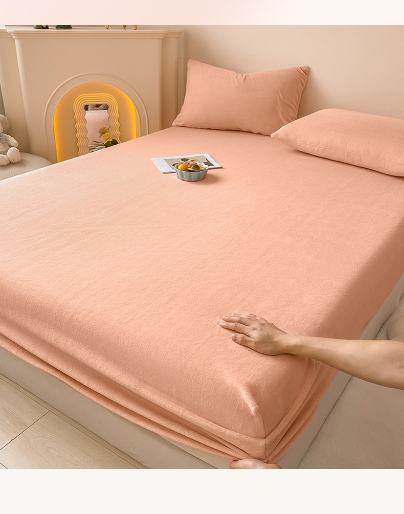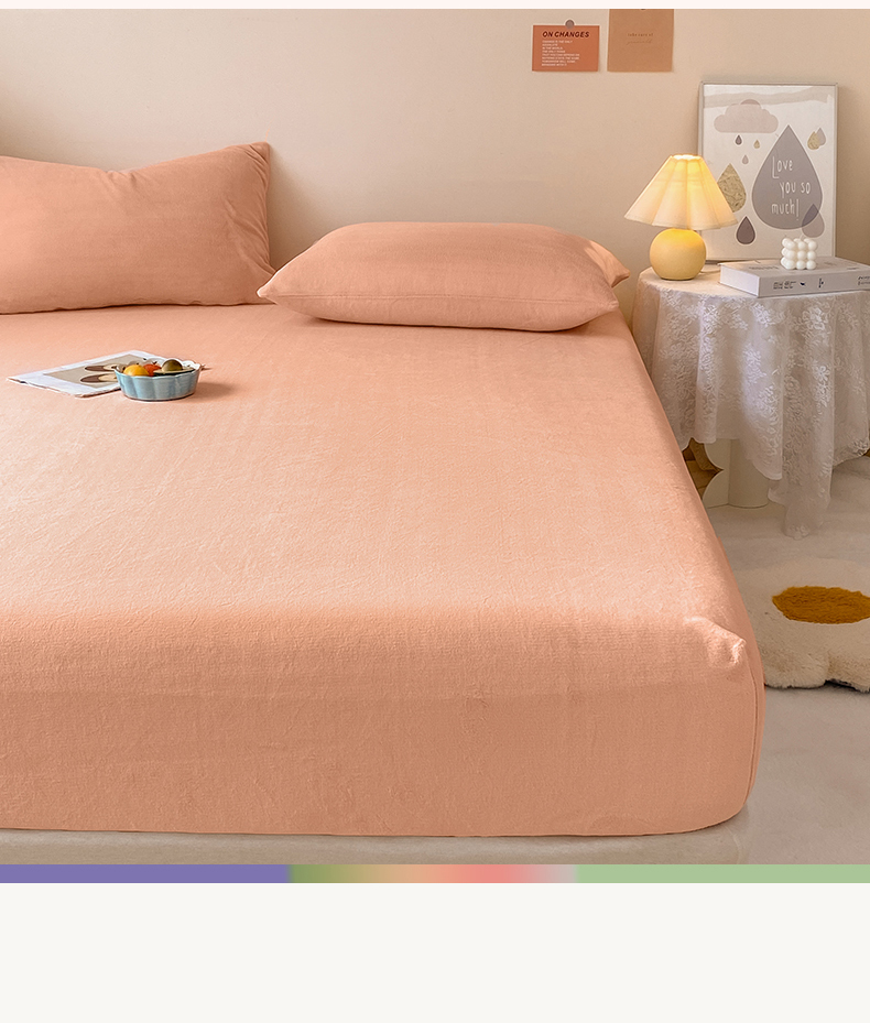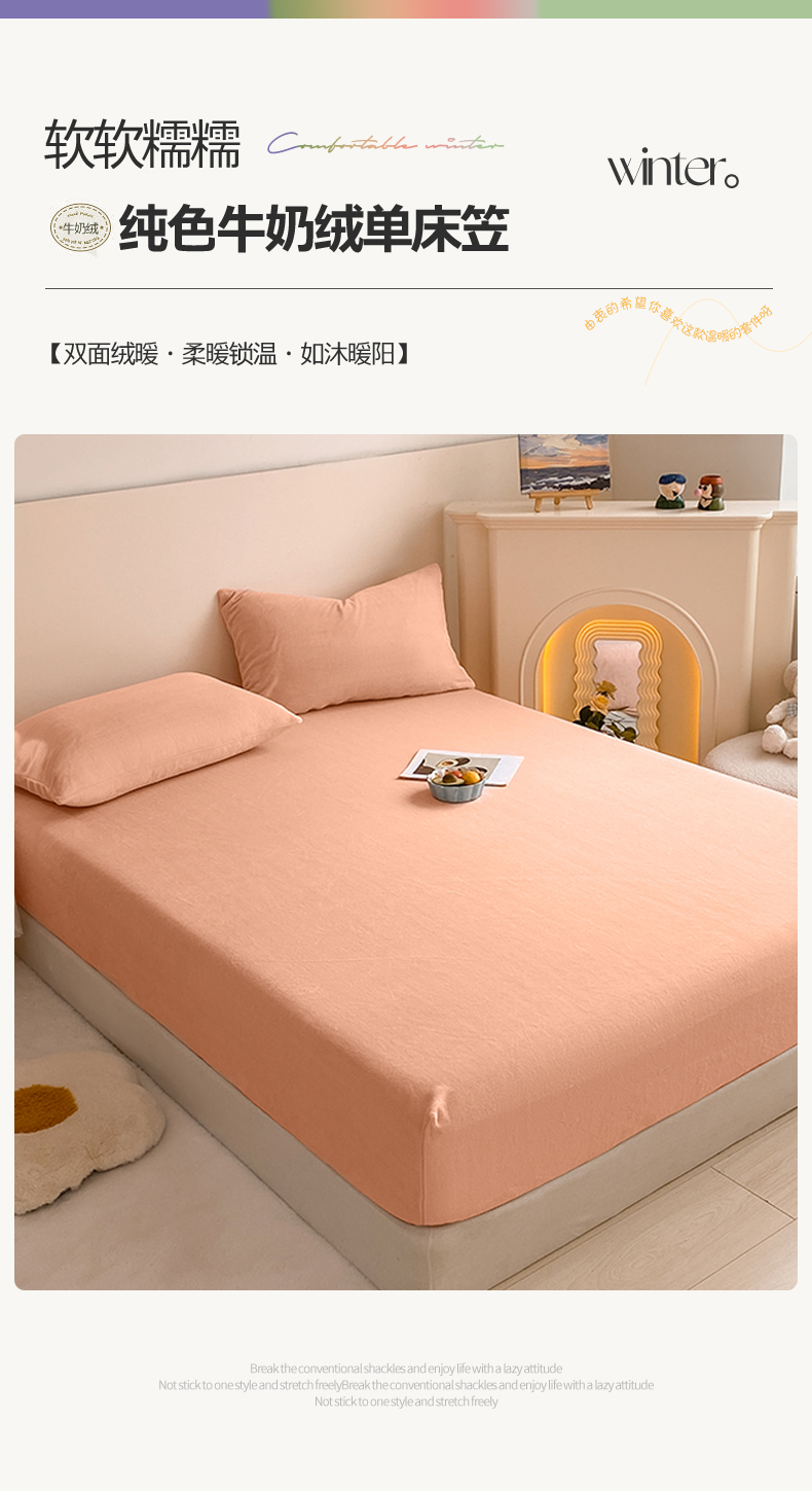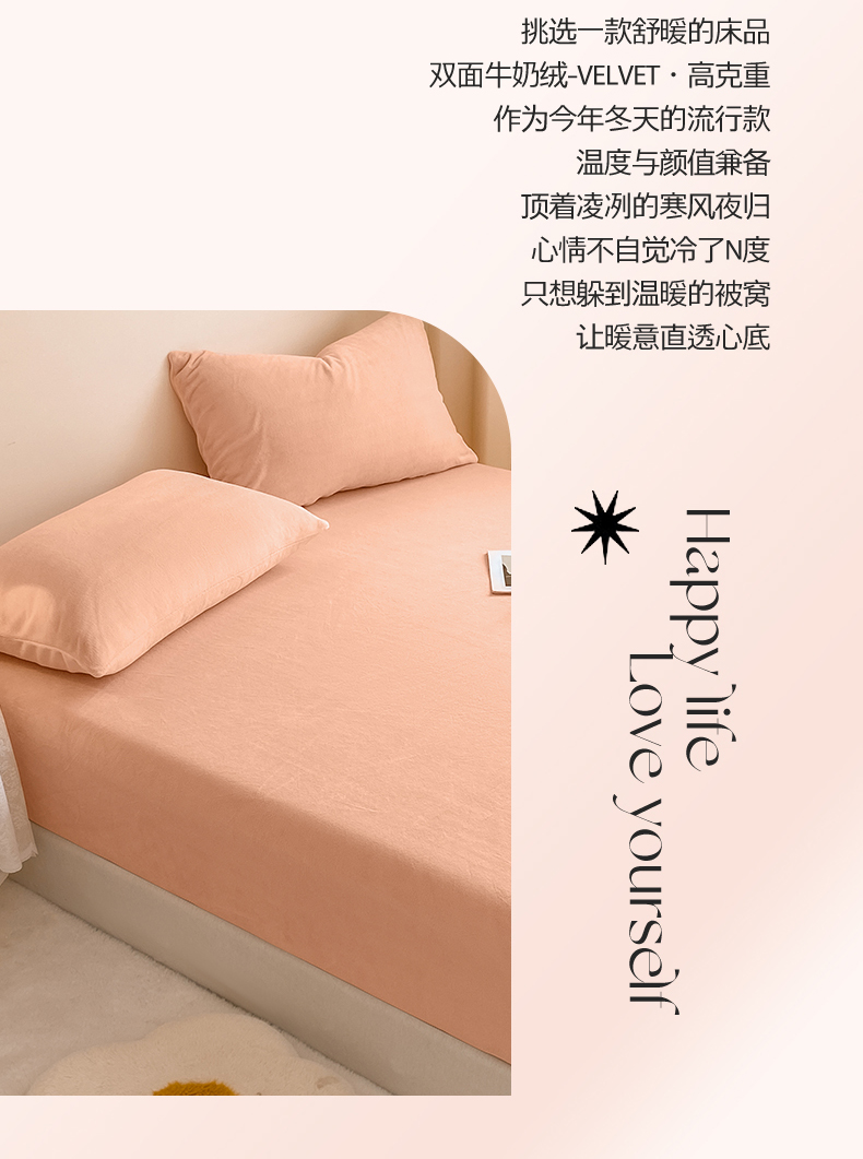 眠帛家居 2024新款纯色高克重牛奶绒单床笠 奶油粉