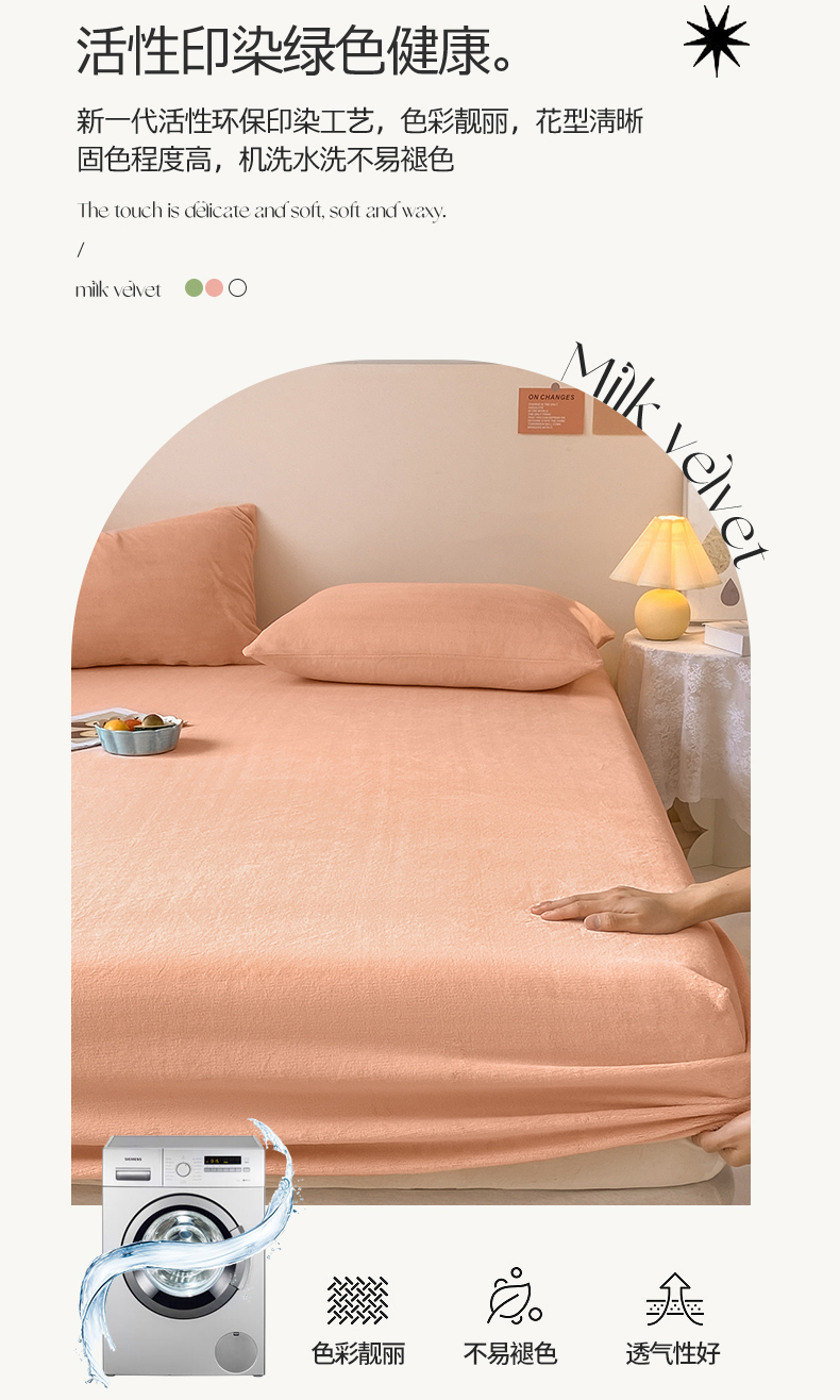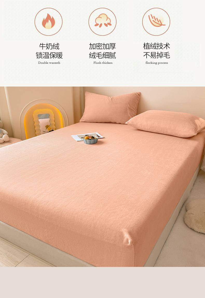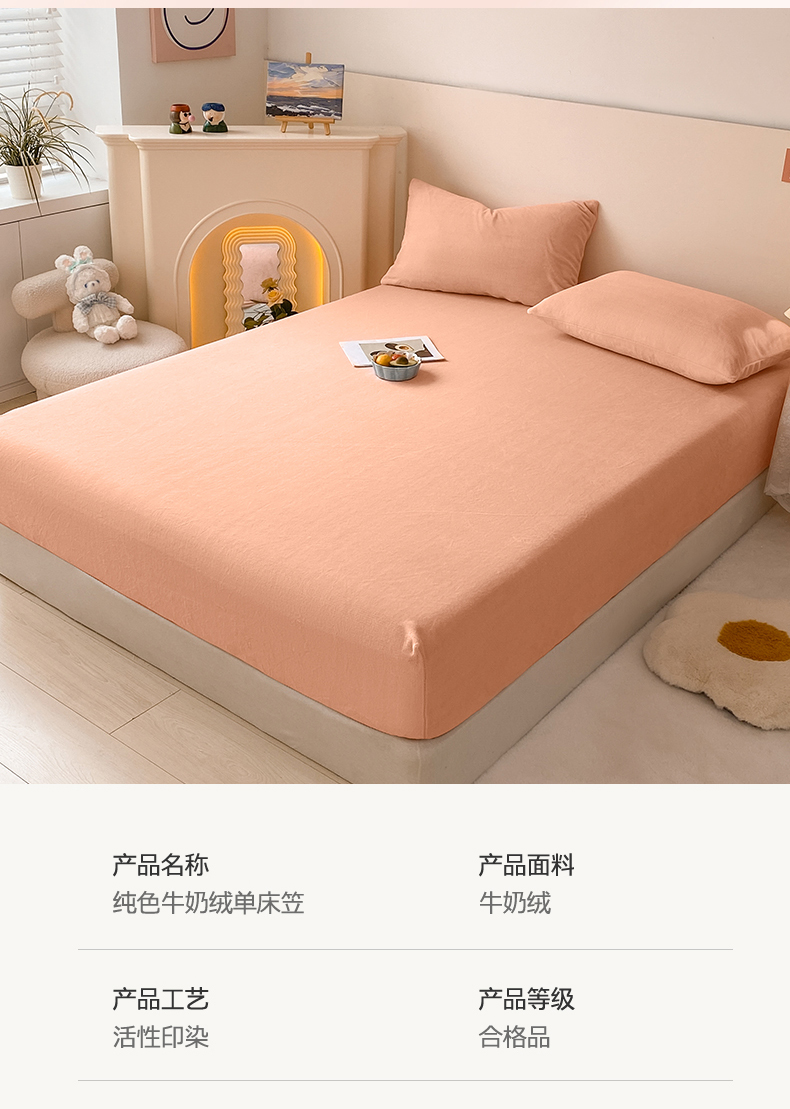 商品名称:眠帛家居 2024新款纯色高克重牛奶绒单床笠 奶油粉