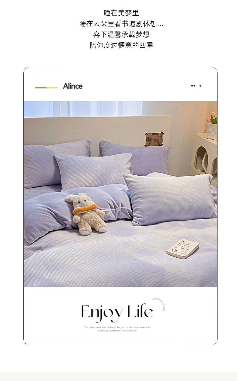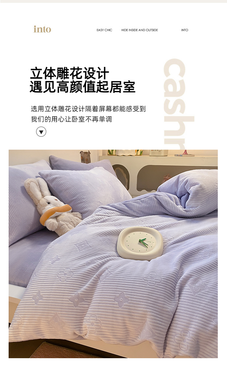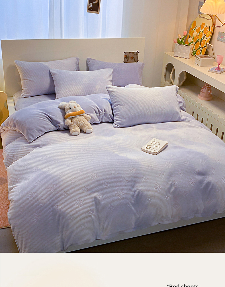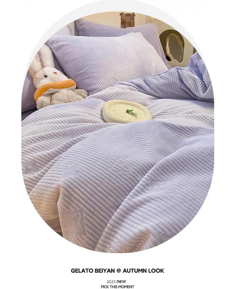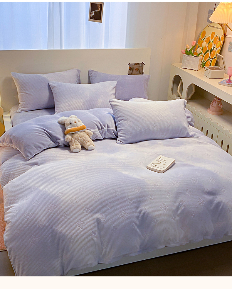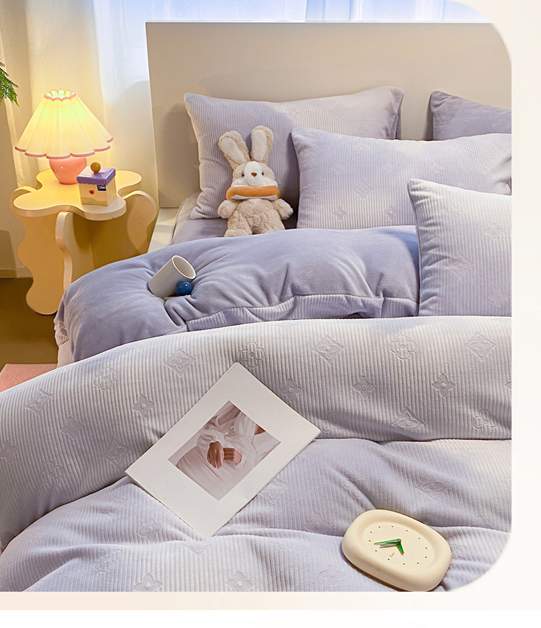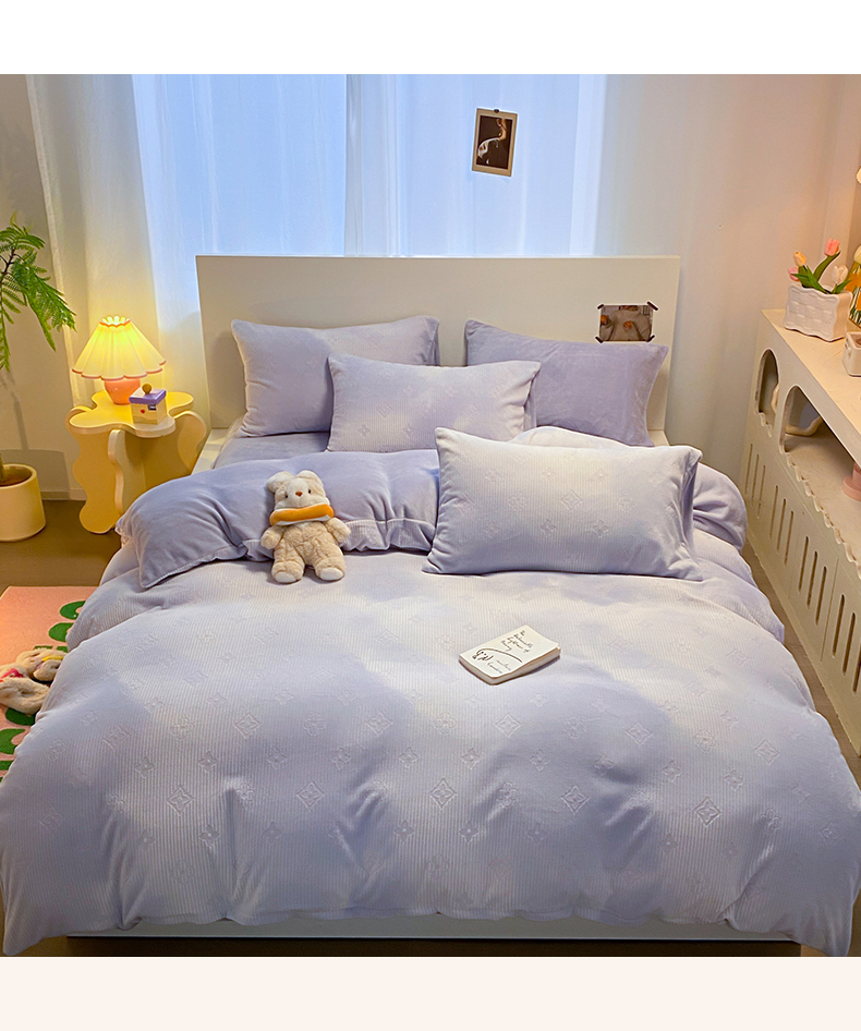 呗旺鹿 2024新款高克重着色烂花雕花牛奶绒轻奢四件套 爱维紫罗兰