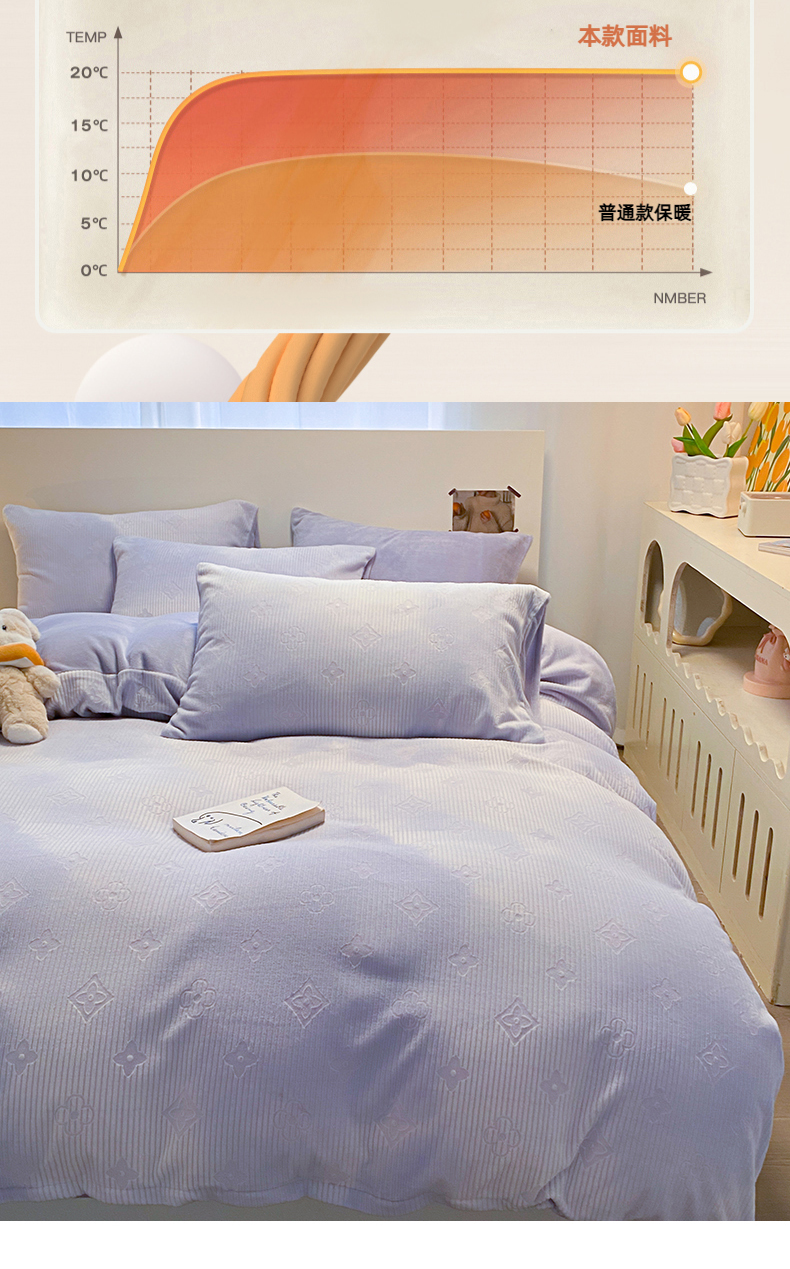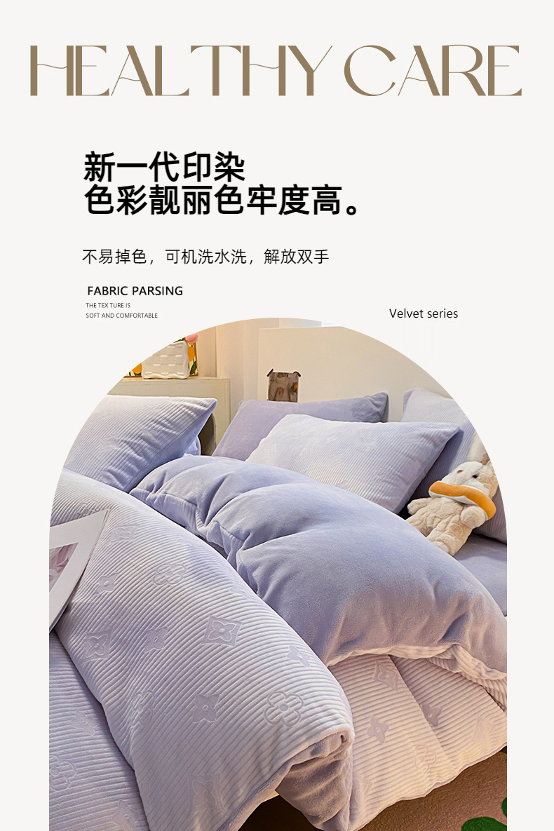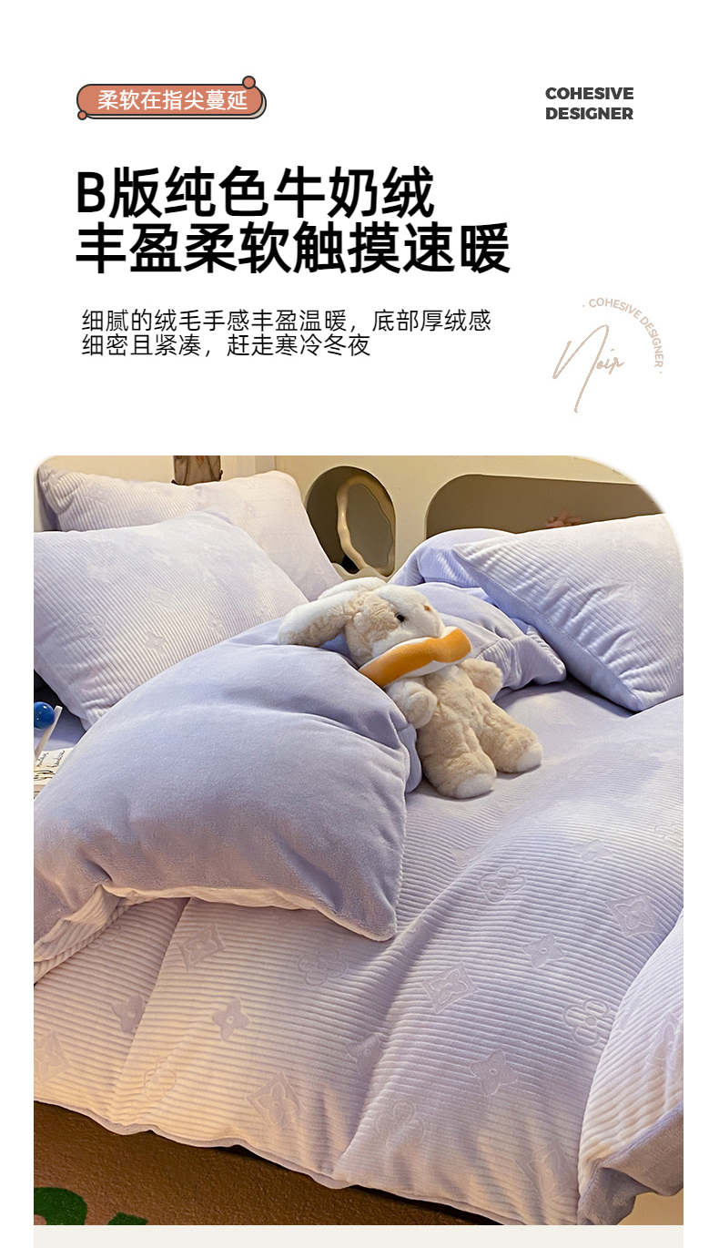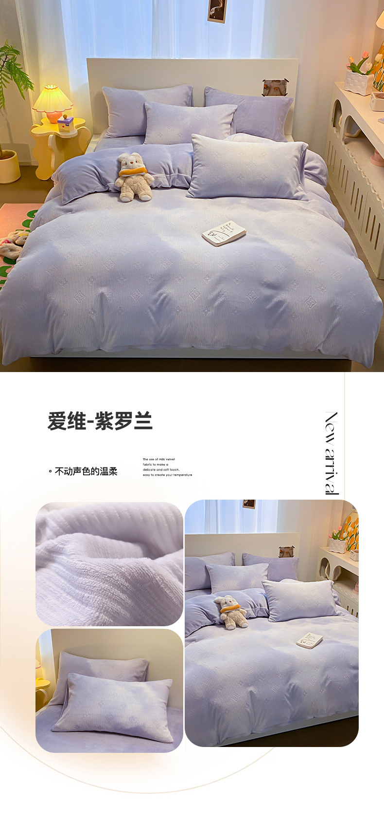 商品名称:呗旺鹿 2024新款高克重着色烂花雕花牛奶绒轻奢四件套 爱维紫罗兰