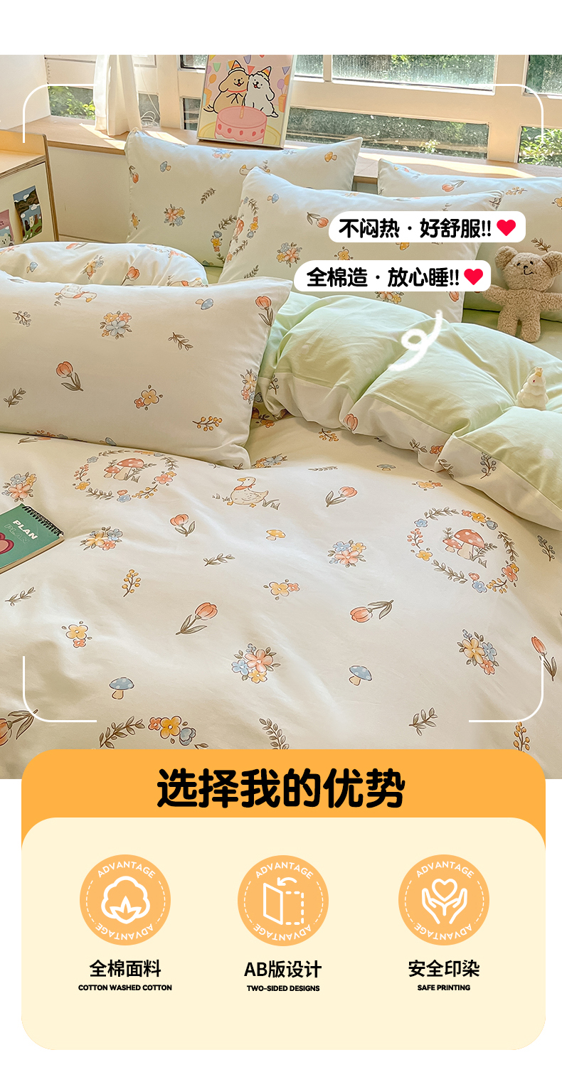 (总)本制 2025新款12868全棉纯棉印花成人学生四件套,晨露,晨蔓,花间,郁之香