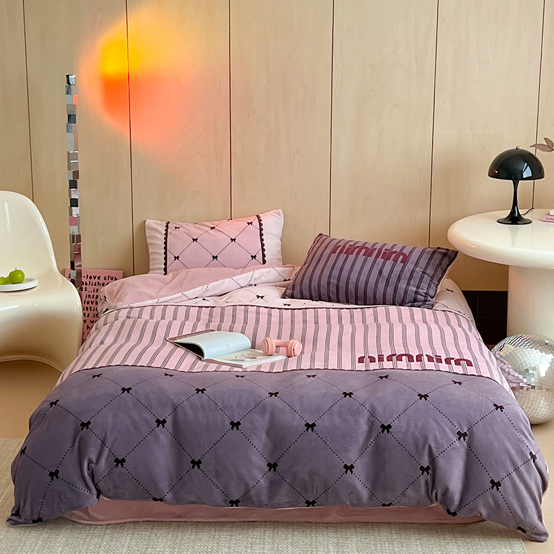 (总)昔可家纺 2024新款印花牛奶绒四件套系列-ins少女系列,芭蕾蛋糕,芭蕾美学,粉格蝴蝶结,黑粉芭蕾蝴蝶结,蓝格蝴蝶结,樱桃奶油蛋糕