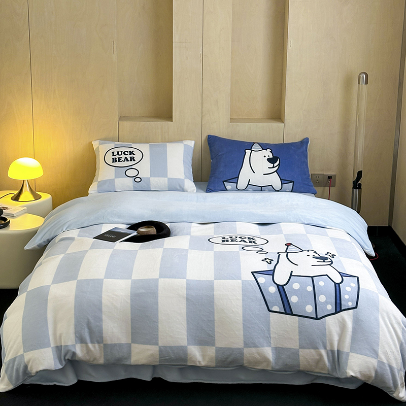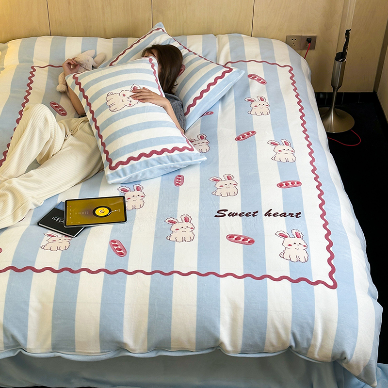 (总)昔可家纺 2024新款印花牛奶绒四件套系列-洛丽塔风,萝莉小兔,小熊烘焙屋,小熊玩偶屋