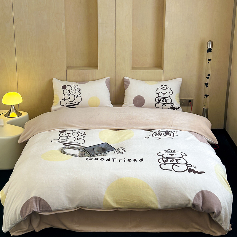 商品名称:昔可家纺 2024新款大版数码印花设计师牛奶绒四件套 狗狗厨师