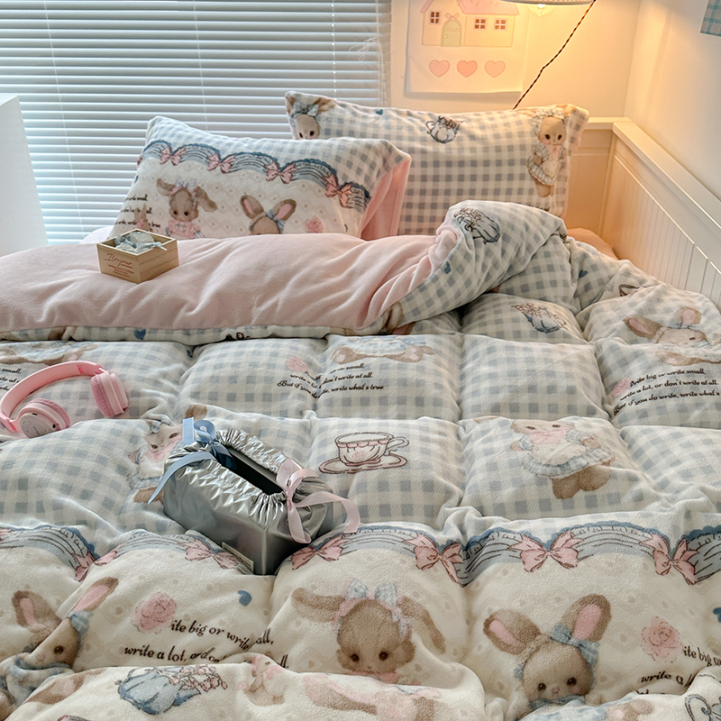 (总)昔可家纺 2024新款印花牛奶绒四件套系列-洛丽塔风,萝莉小兔,小熊烘焙屋,小熊玩偶屋