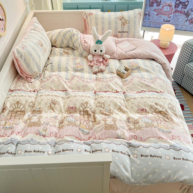 昔可家纺 2024新款印花牛奶绒四件套系列-洛丽塔风 小熊烘焙屋