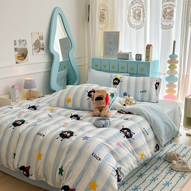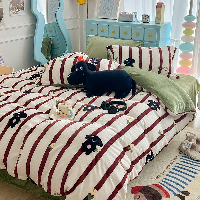 昔可家纺 2024新款印花牛奶绒四件套系列-卡通系列 萌宠小窝