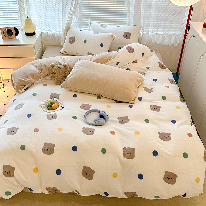 (总)昔可家纺 2024新款印花牛奶绒四件套系列-洛丽塔风,萝莉小兔,小熊烘焙屋,小熊玩偶屋