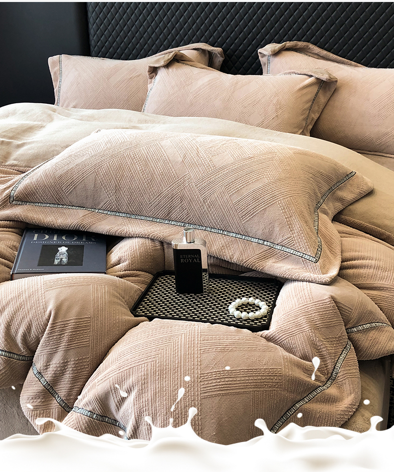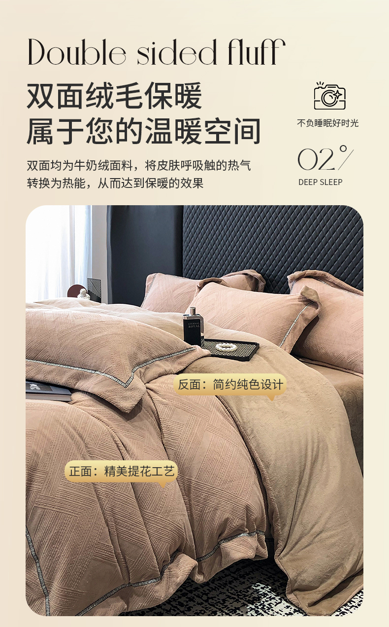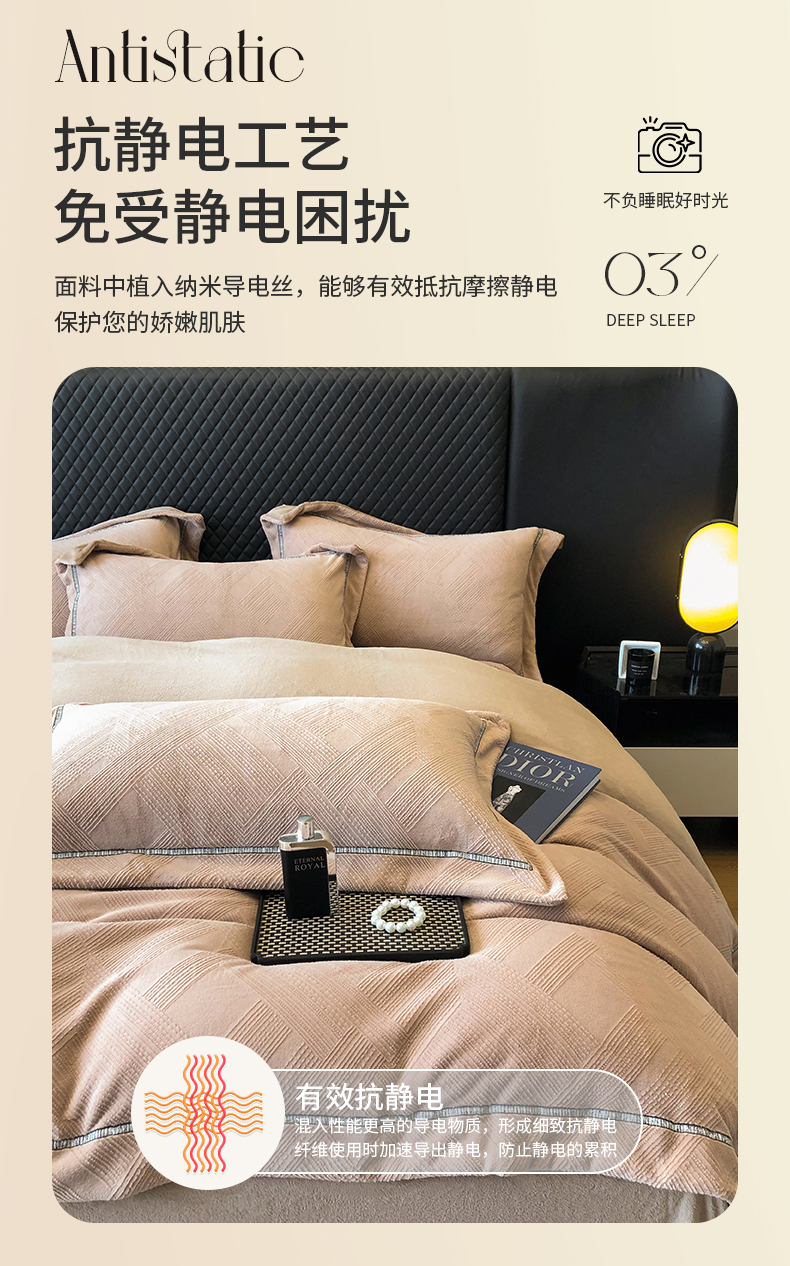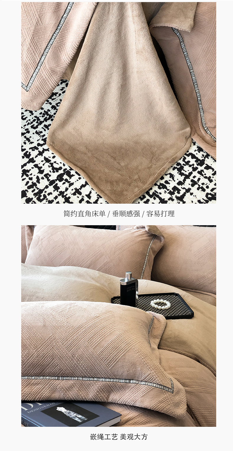商品名称:家居1号 2024新款230克全消光牛奶绒立体烂花四件套-奥地利 奥地利-卡其
