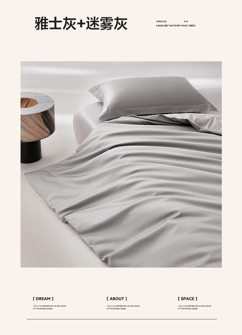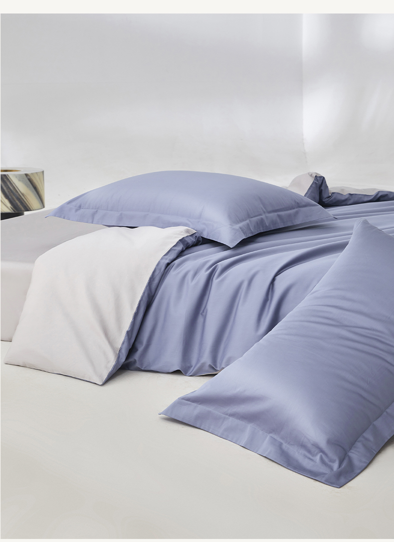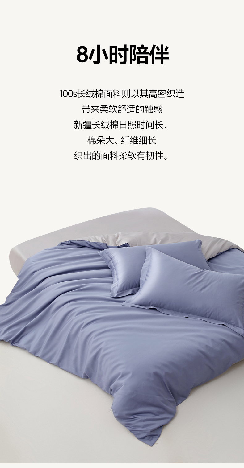 当前位置: 91家纺网 > 商品网购 > 床品套件 > 四件套 > 长绒棉四件套 > 轩和家居 2024新款A类50S贡缎长绒棉四件套系列 海茵蓝+雅士灰