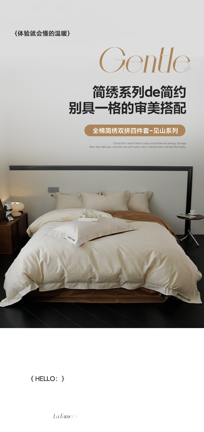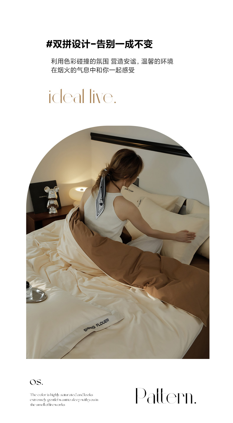 当前位置: 91家纺网 > 商品网购 > 床品套件 > 四件套 > 全棉普通四件套 > EH家居 2024新款见山系列全棉简绣双拼四件套 见山-云咖