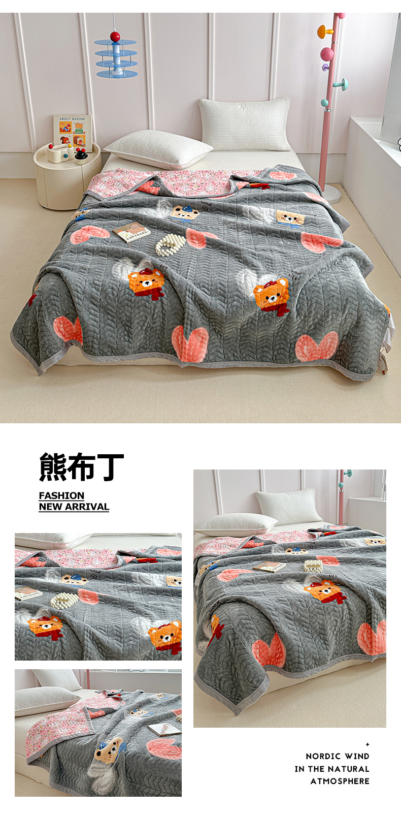 源舜家纺 2025新款小清新印花牛奶绒床盖多用途盖毯系列 熊布丁