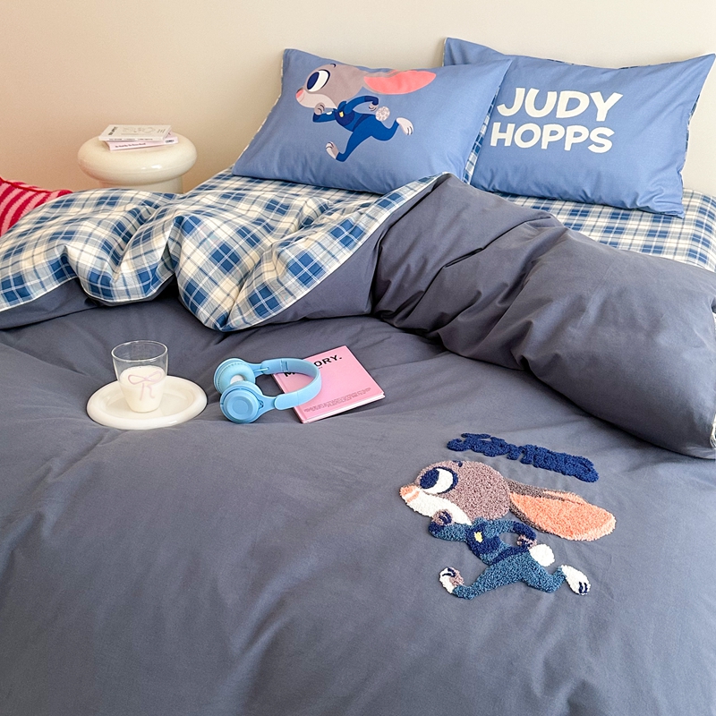 珺柔家纺 2024新款数码印花全棉磨毛毛巾绣四件套 兔子警官