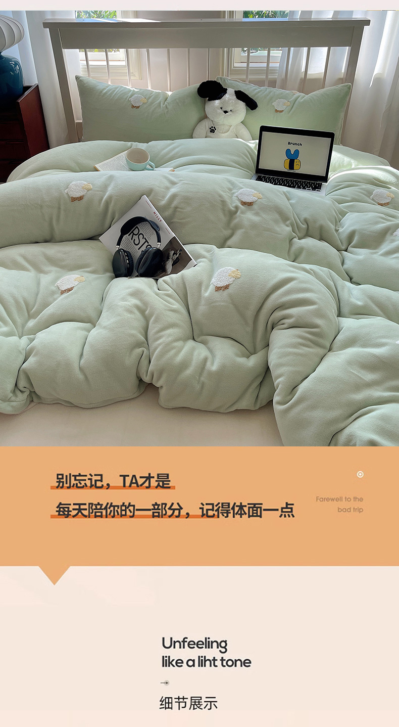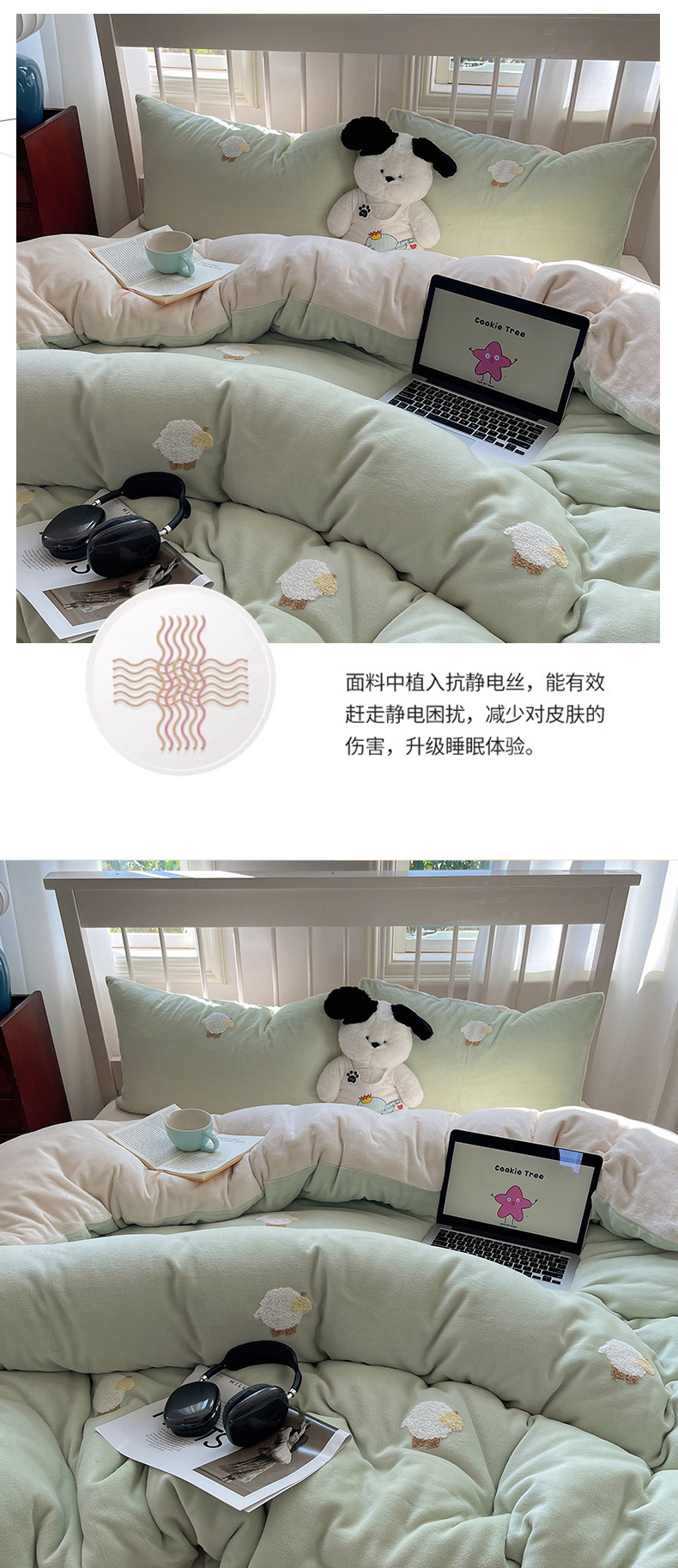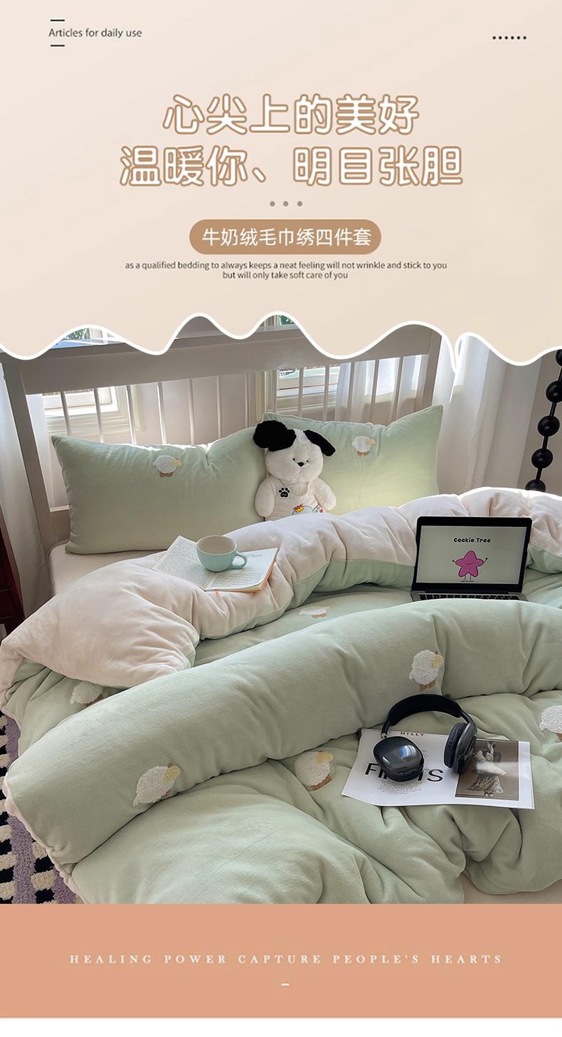 红嘴企鹅 2025新款牛奶绒毛巾绣四件套 小绵羊