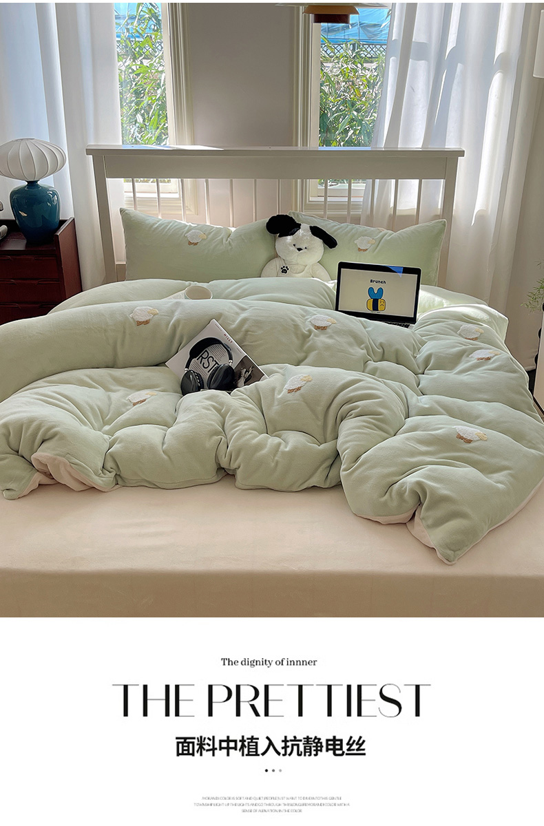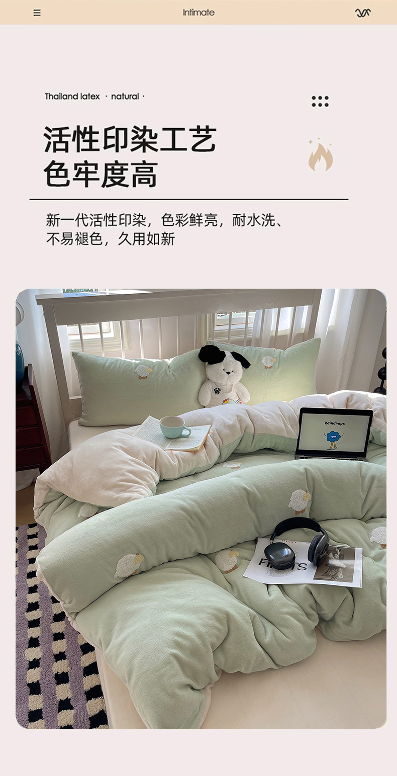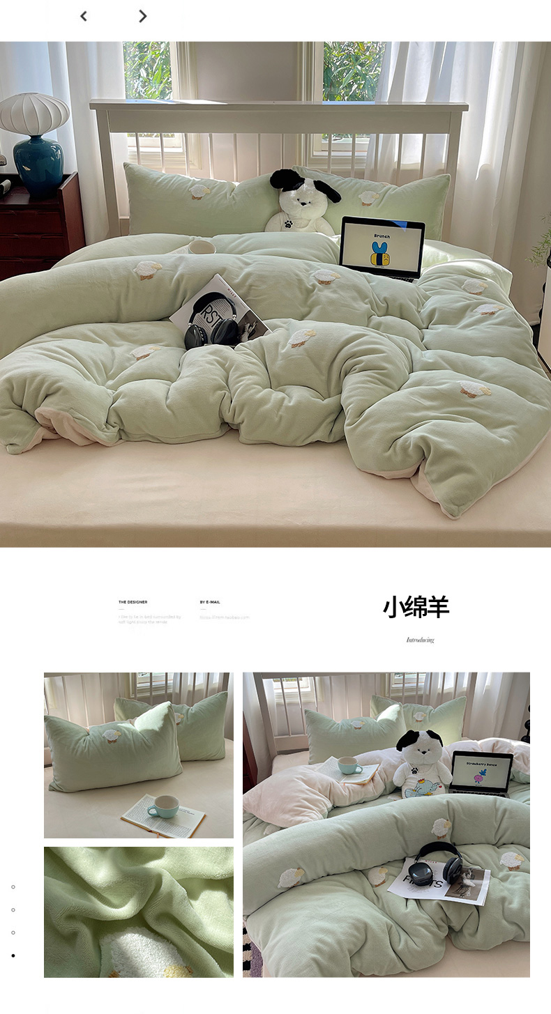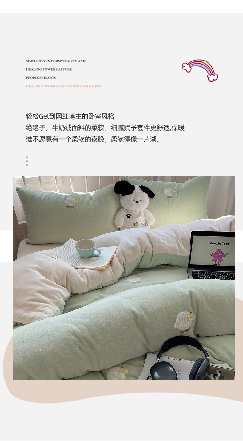 红嘴企鹅 2025新款牛奶绒毛巾绣四件套 小绵羊