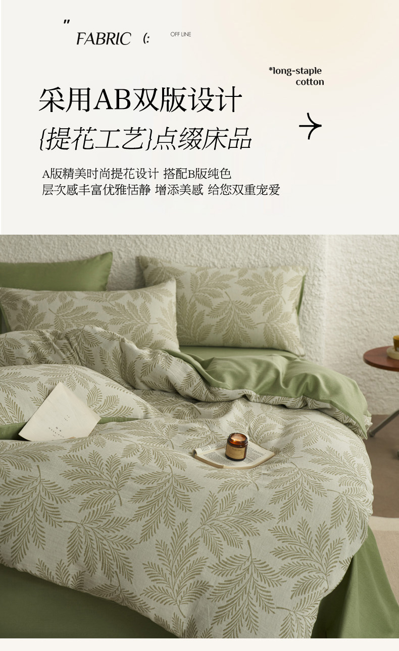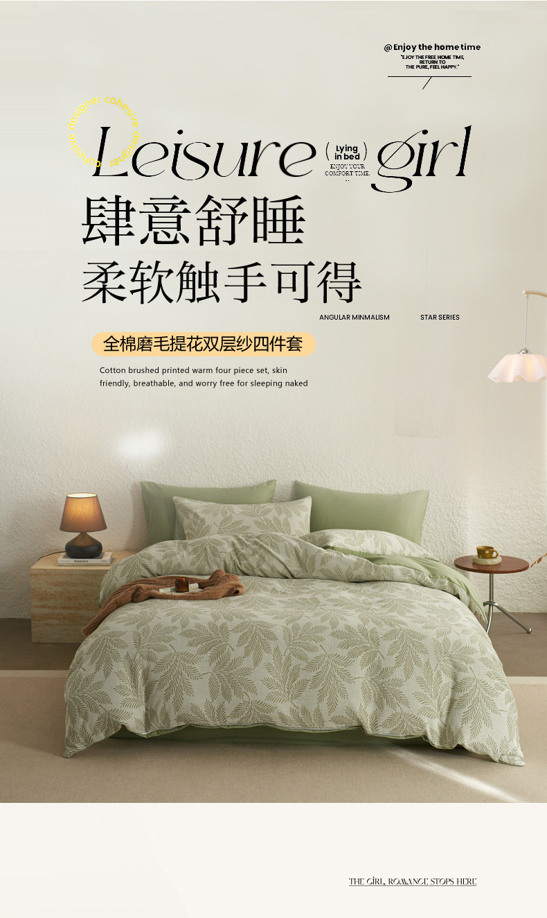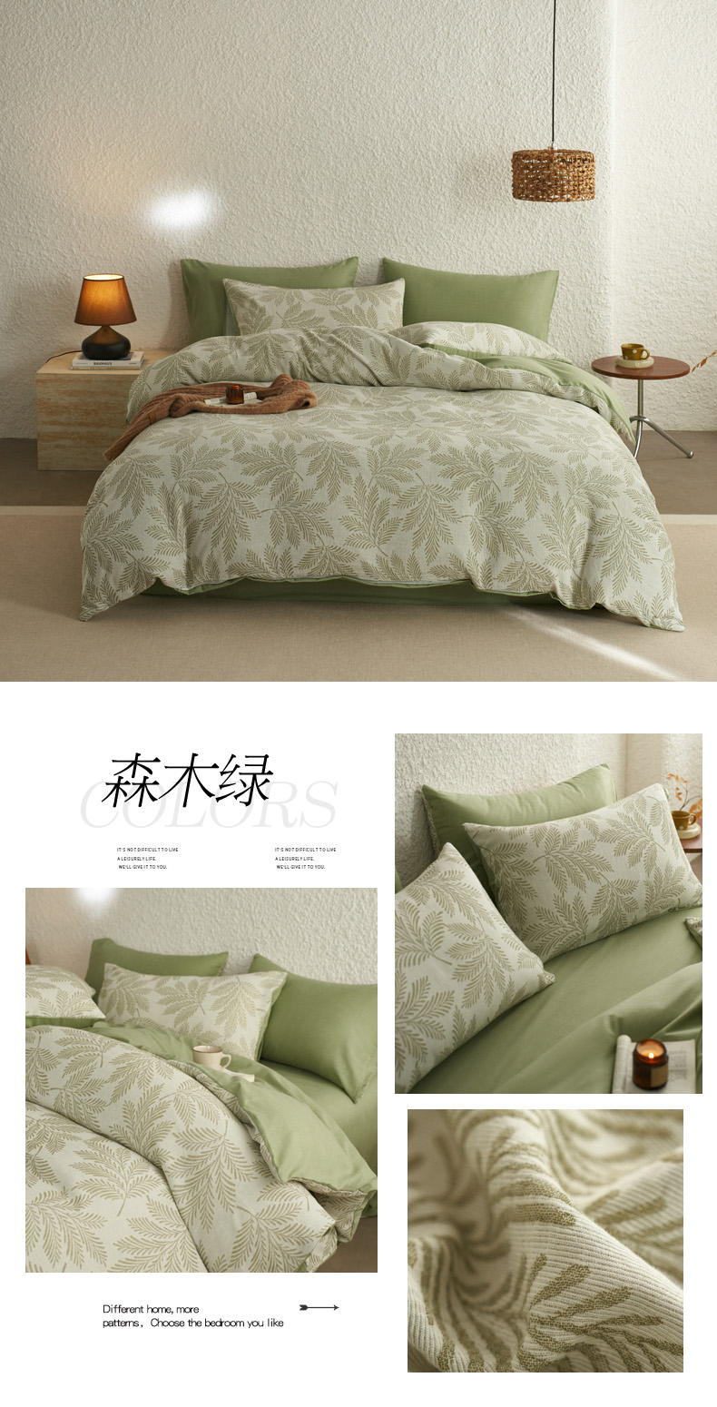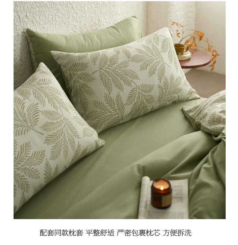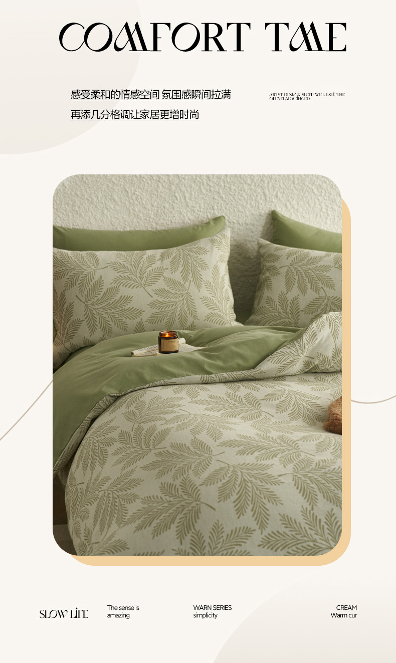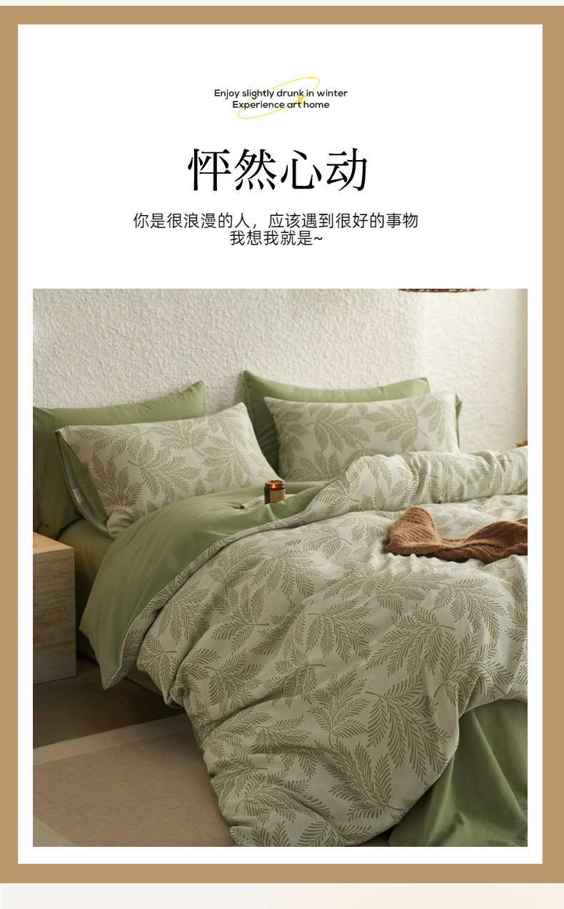 当前位置: 91家纺网 > 商品网购 > 床品套件 > 四件套 > 普通磨毛四件套 > 慕尚家纺 2025新款磨毛提花双层纱四件套 森木绿