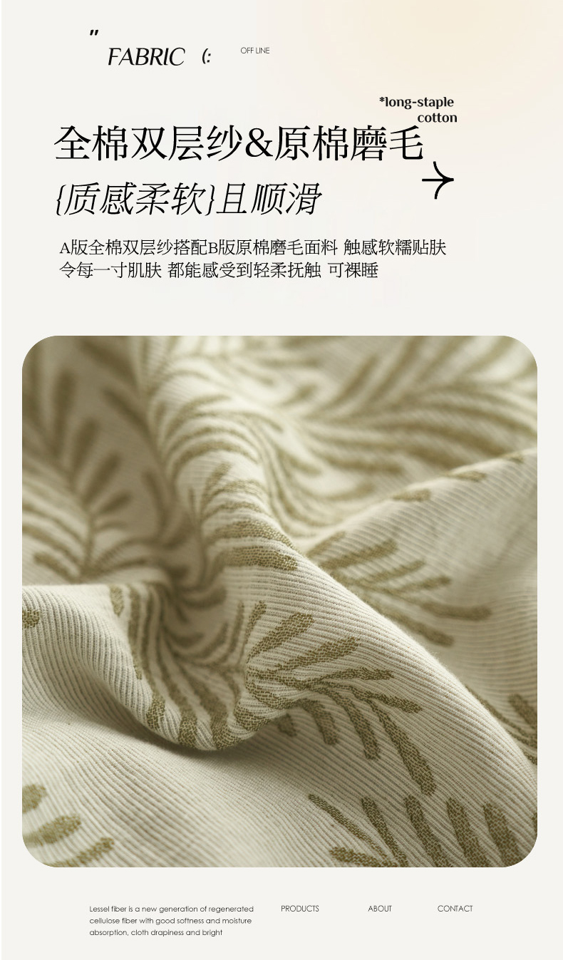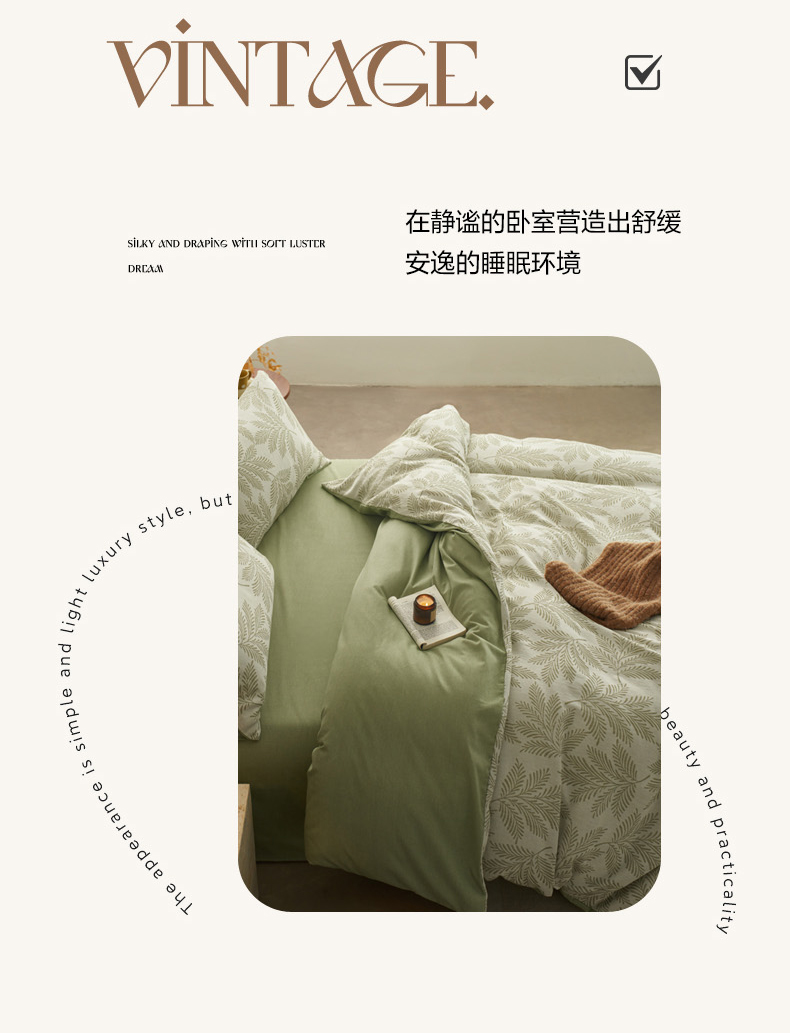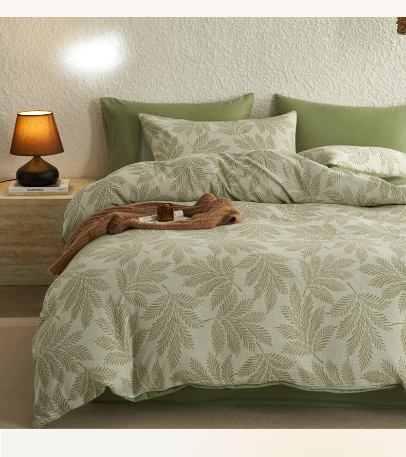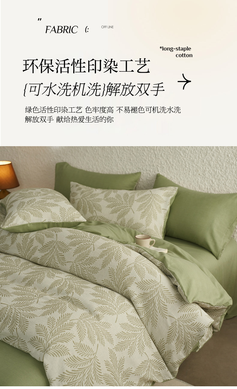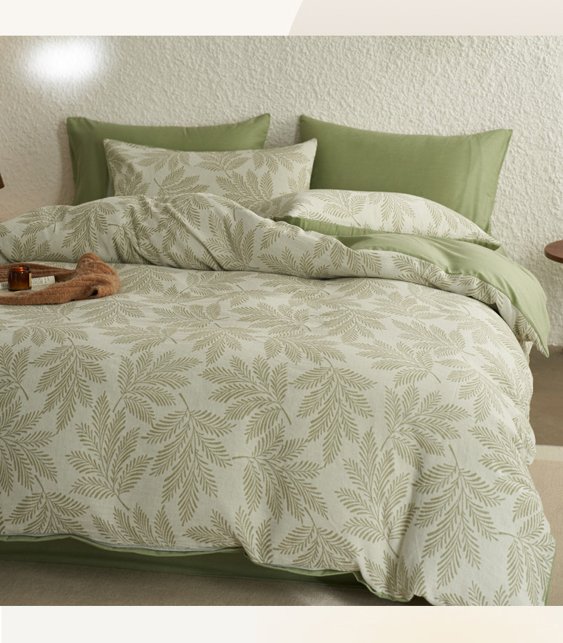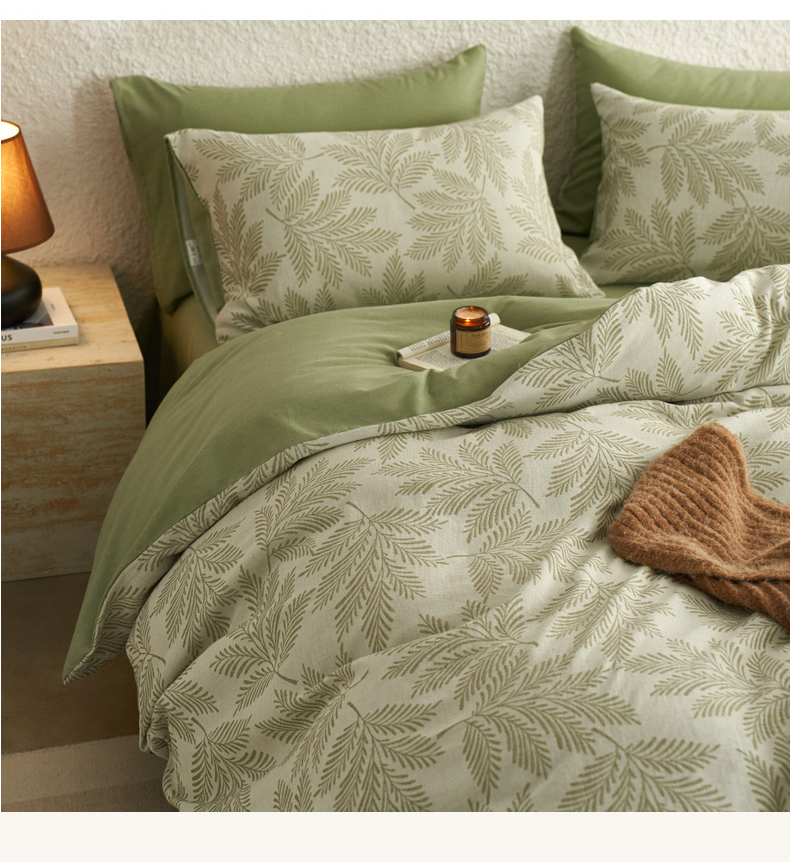 当前位置: 91家纺网 > 商品网购 > 床品套件 > 四件套 > 普通磨毛四件套 > 慕尚家纺 2025新款磨毛提花双层纱四件套 森木绿