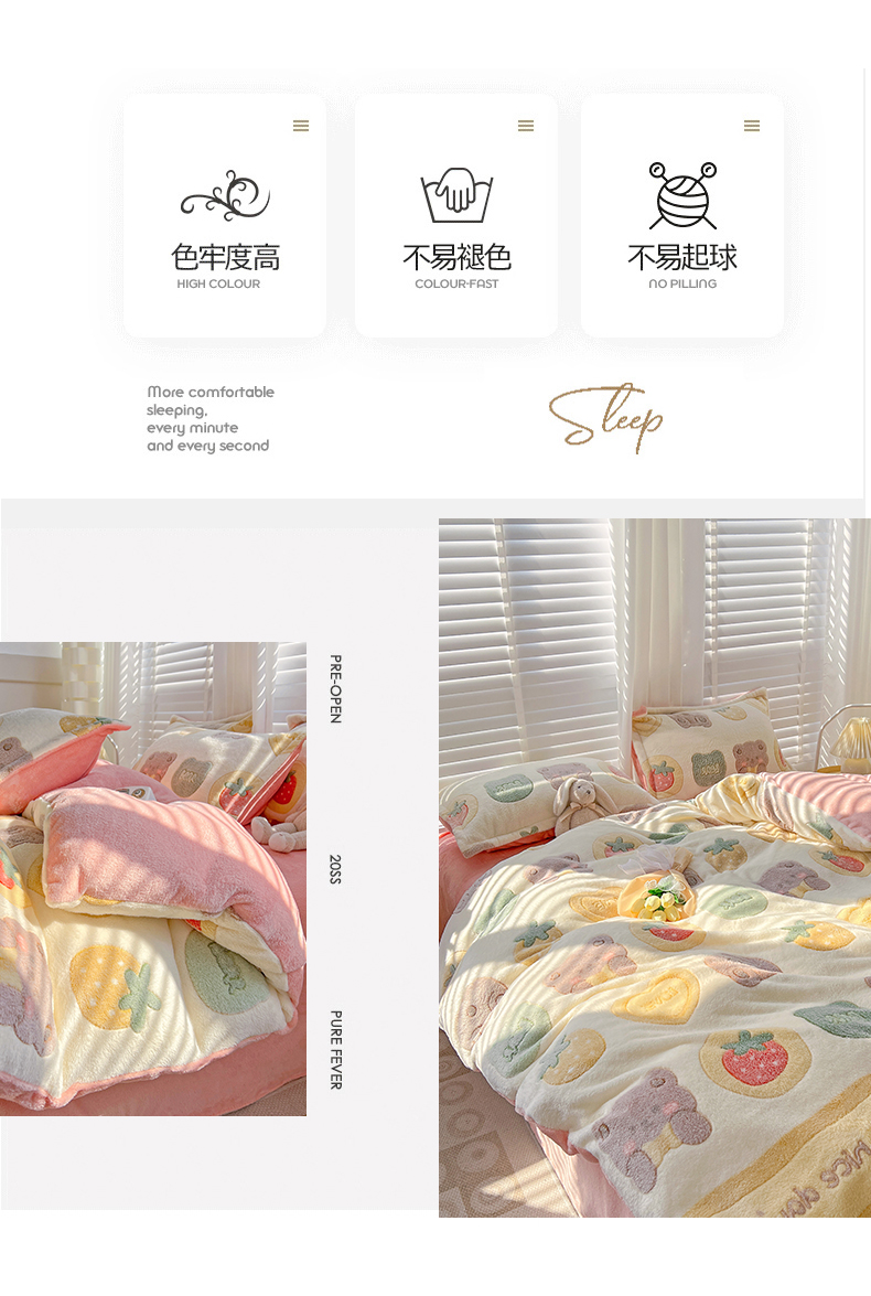 当前位置: 91家纺网 > 商品网购 > 床品套件 > 四件套 > 其它四件套 > 梵克保罗 2024秋冬新品立体雪花绒单被套牛奶绒法莱绒雕花绒兔毛卡通四件套学生三件套 爱蔓
